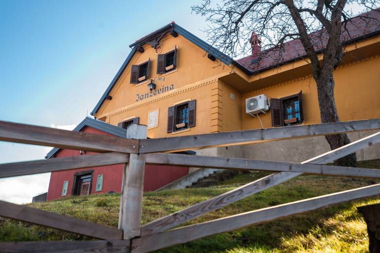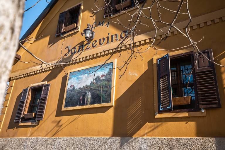 Ob vstopu v Krčmo Janževino oči švigajo od podrobnosti do podrobnosti. Vsak kos pohištva, kamna, kljuke, lestenca, vrat ima svoj pomen, vse skriva razlago - glavni »pravljičar«, kot se pošali sam, pa je naš gostitelj Franc Mlakar.
