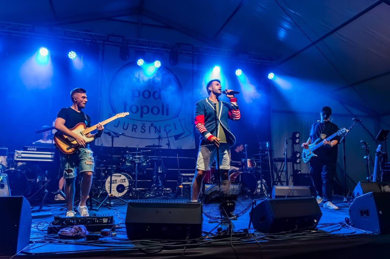 Včeraj se je v Juršincih odvil vrhunec letošnje 24. izvedbe prireditve Noči pod topoli. Pod velikim prireditvenim šotorom se je zbrala množica obiskovalcev, željnih dobre glasbe, zabave in sproščenega druženja.