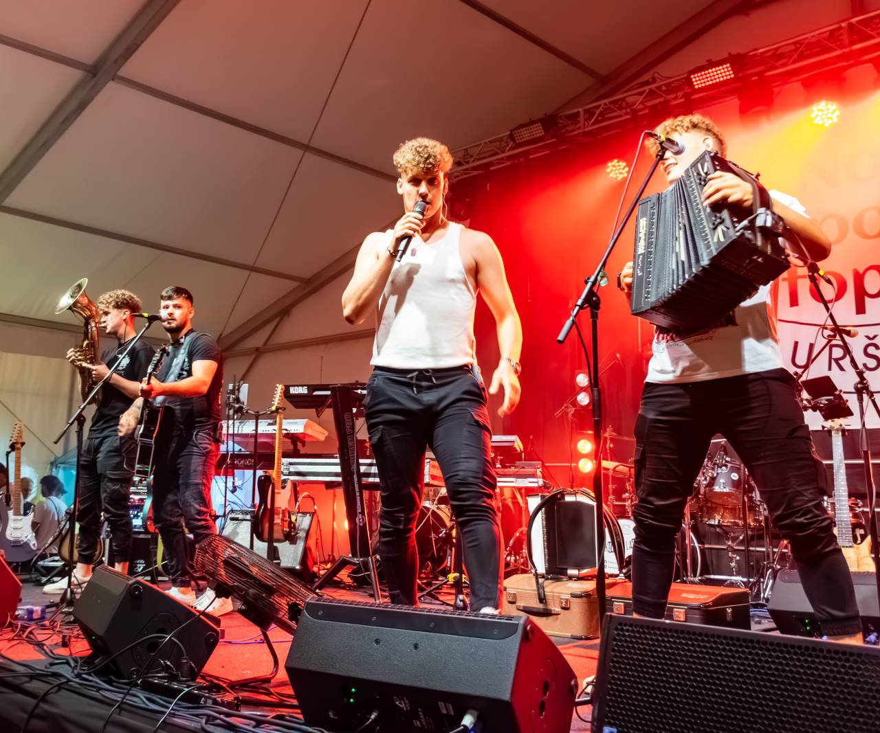 Najprej so nastopili Firbci, ki so publiko navdušili z uspešnicami, kot so Frajla, Brajde in Tinka Tonka. Sledil je energični Domen Kumer, ki je s hiti Bolano, Najboljše vino in Halo halo poskrbel za val plesa in petja pod šotorom.