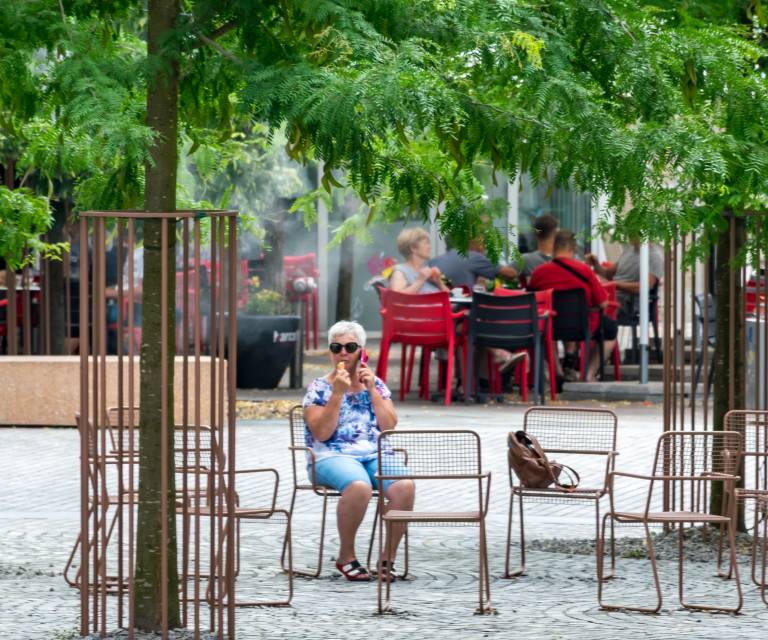 Tisti, ki si kljub pripeki upajo na ulice, iščejo zavetje v senci dreves, se ustavljajo na senčnih mestnih terasah ali pa posedajo ob Dravi, kjer vsaj rahel vetrič nekoliko omili poletno vročino.
