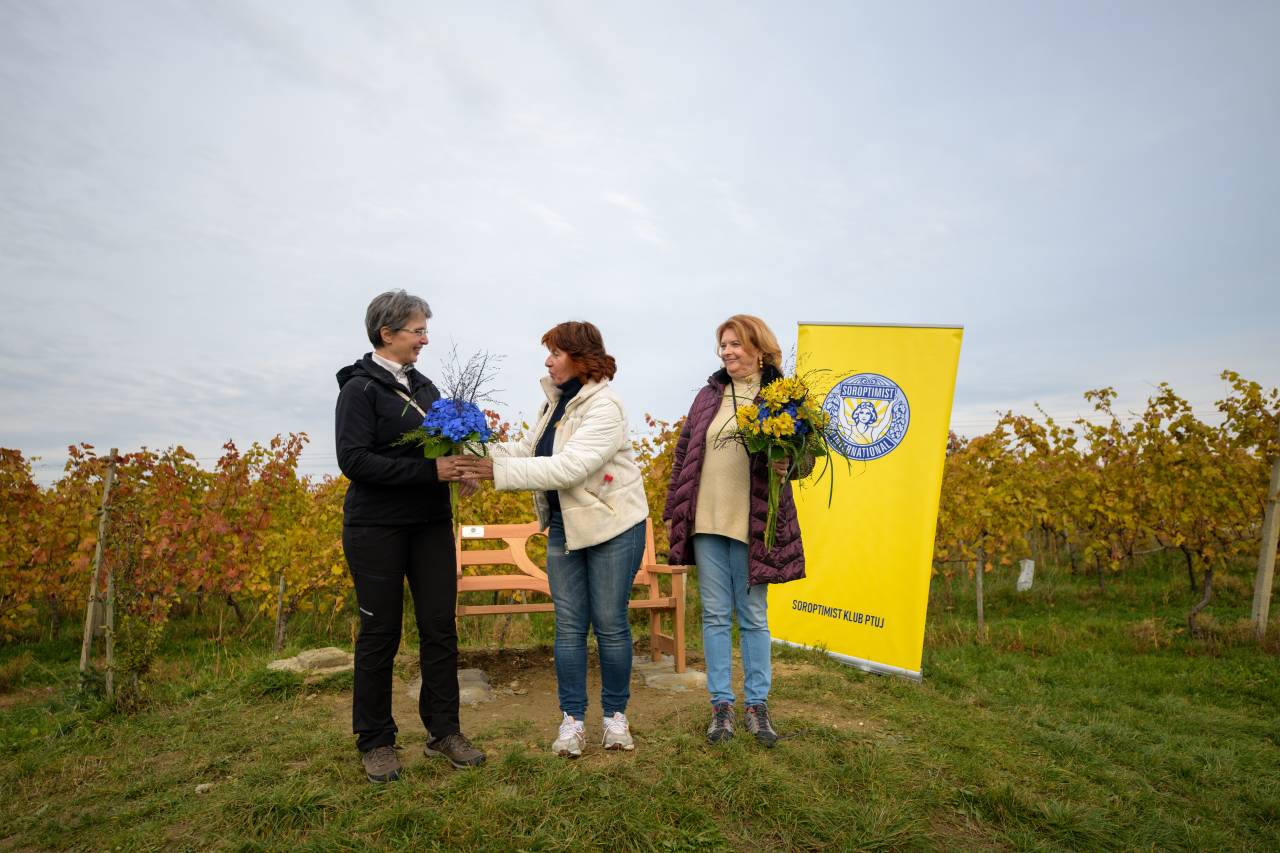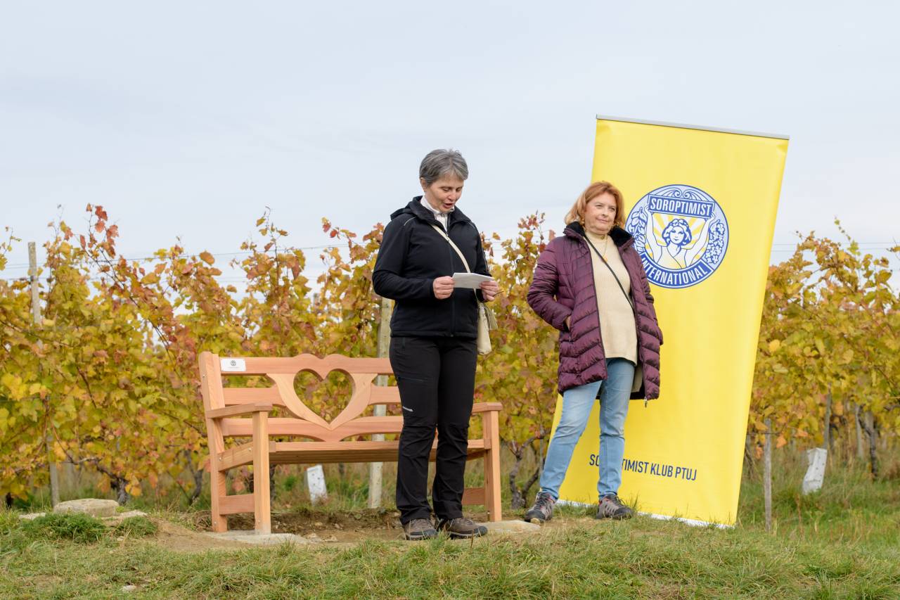 Ta klop na Ptuju pa predstavlja še en mejnik. Za to, da se je ljubezenska klop znašla prav na Gomili na Ptuju, so poskrbele članica Kluba Soroptimist Ptuj.