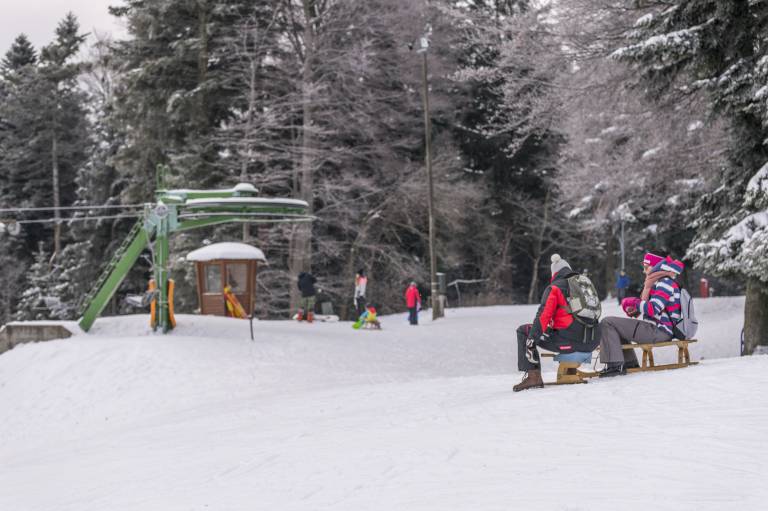Prav zato so se v lepem vremenu podali na Pohorje, pa naj bo to peš, s smučmi ali sanmi. Veliko je družin z malimi otroki, sprehajalcev in drugih.