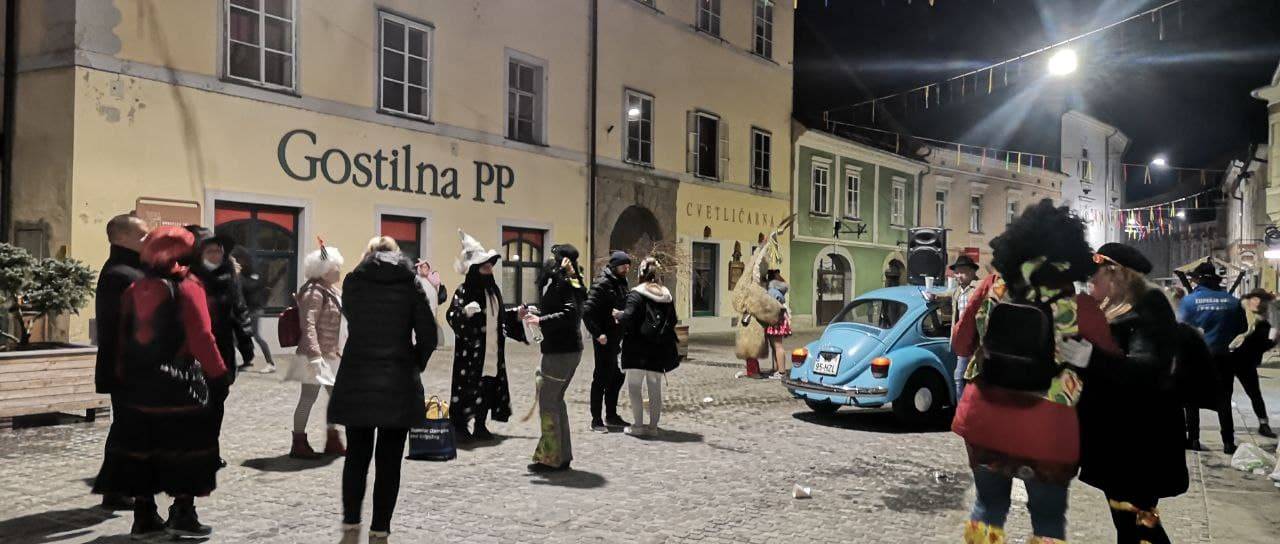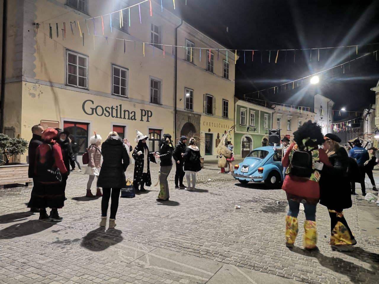 Tudi v popoldanskih in večernih urah so polne našemljenih domačinov, pustno rajanje pa se nadaljuje pozno v noč.