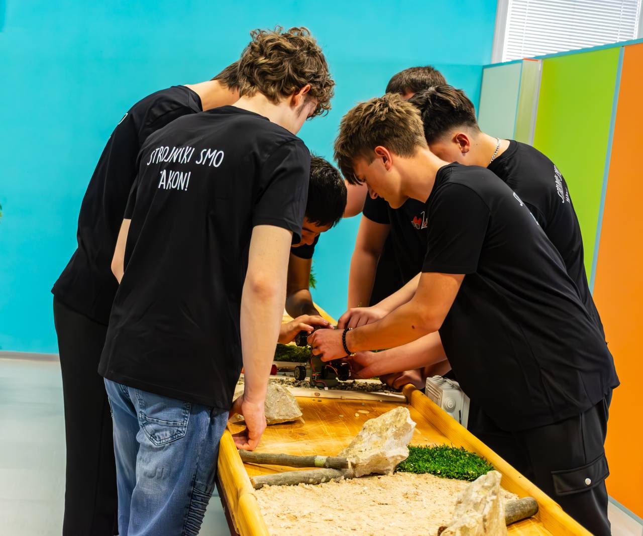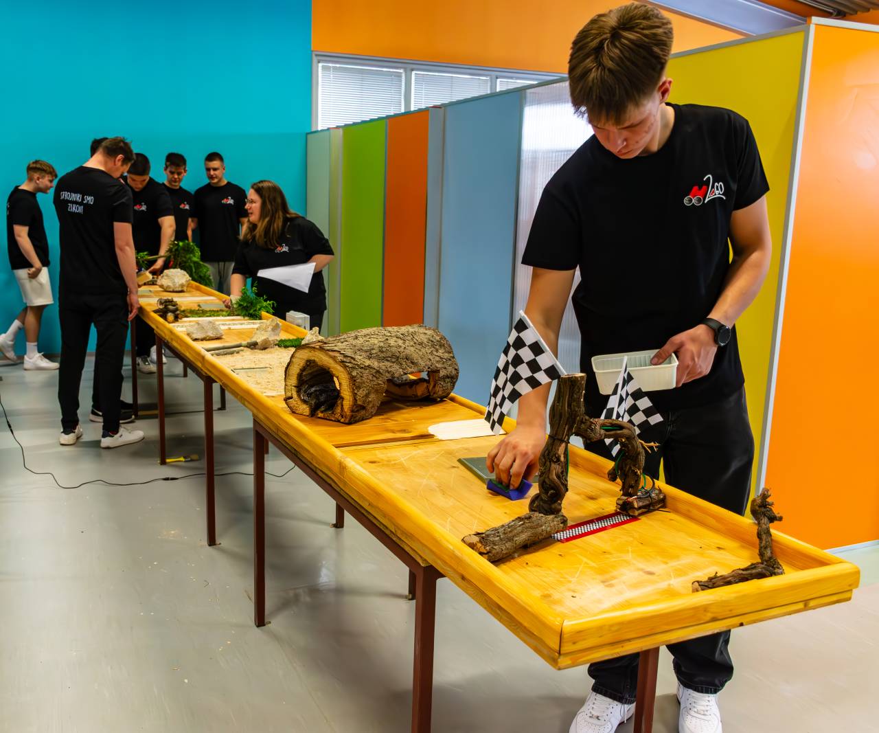 Ob pomoči in usmeritvah mentorjev so samostojno izdelali šestmetrsko tekmovalno progo, jo opremili z ovirami in pripravili na prvo tekmovanje.