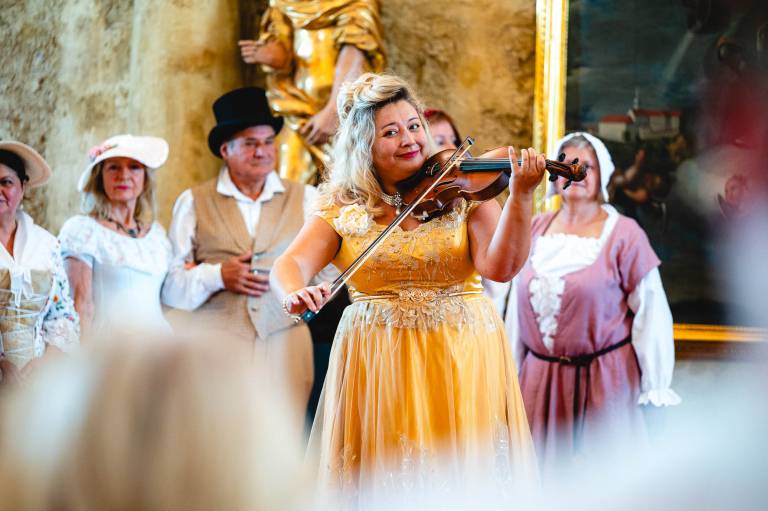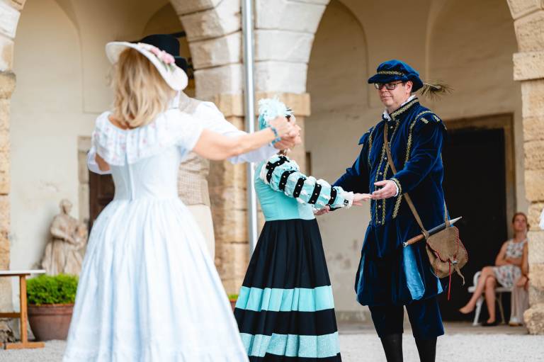 Dogodek je popestrila plesna skupina Pellegrina, ki deluje v okviru društva Cesarsko-kraljevi Ptuj. S plesnimi točkami v avtentičnih kostumih so poskrbeli za zgodovinski duh, ki žari tudi iz avtoričinih del.