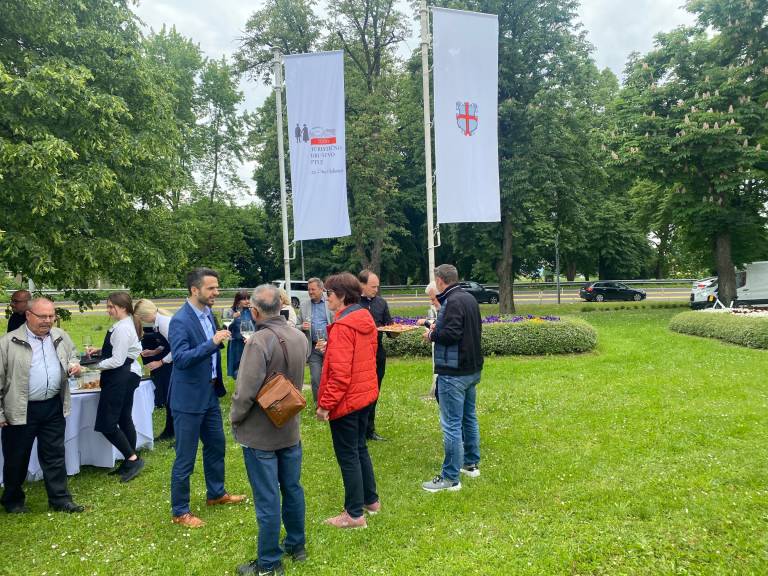 Vsi prisotni so ob izvedbi slovenske in evropske himne počastili praznik Evrope, praznik ponovne vrnitve Slovenije v evropski kulturni prostor ter nato še nazdravili.