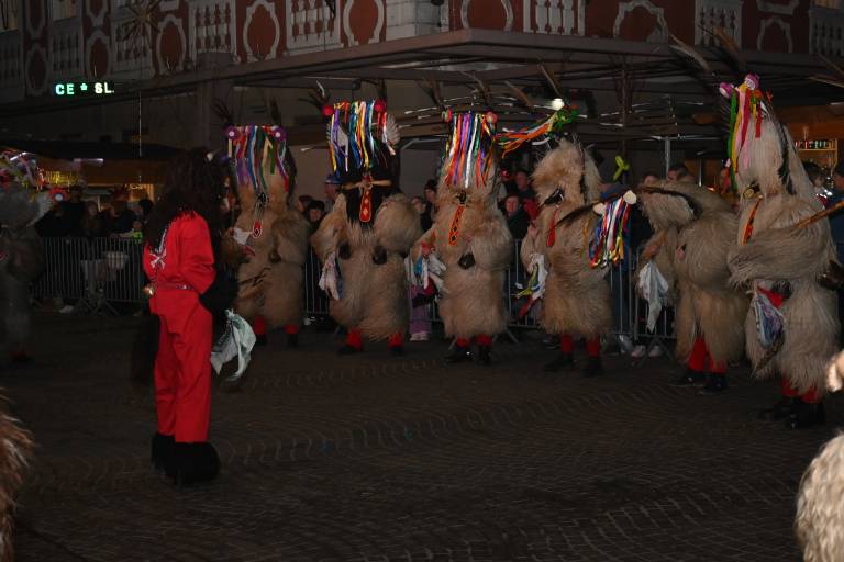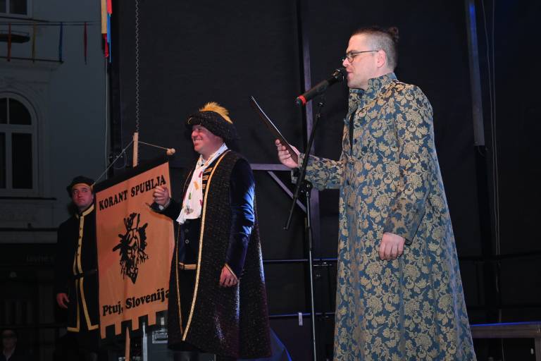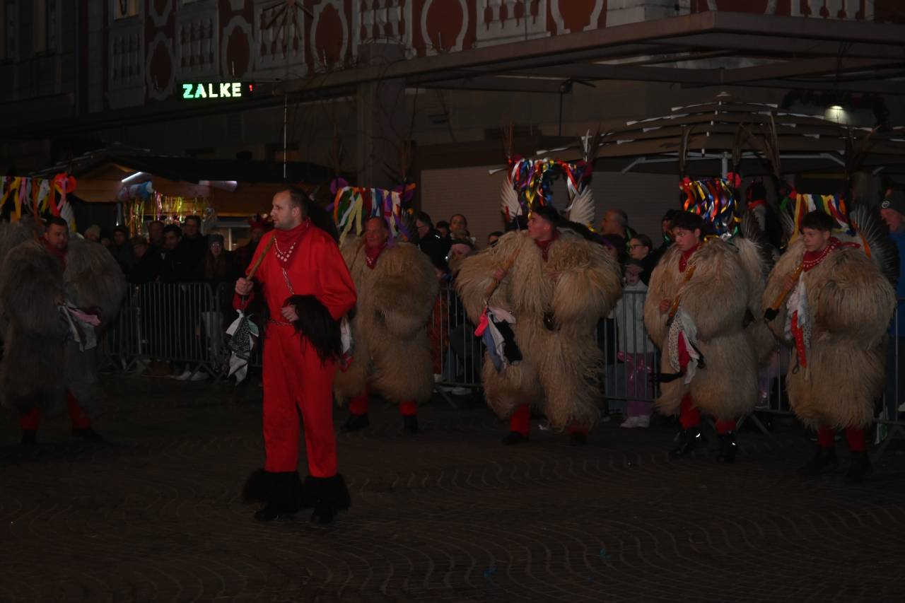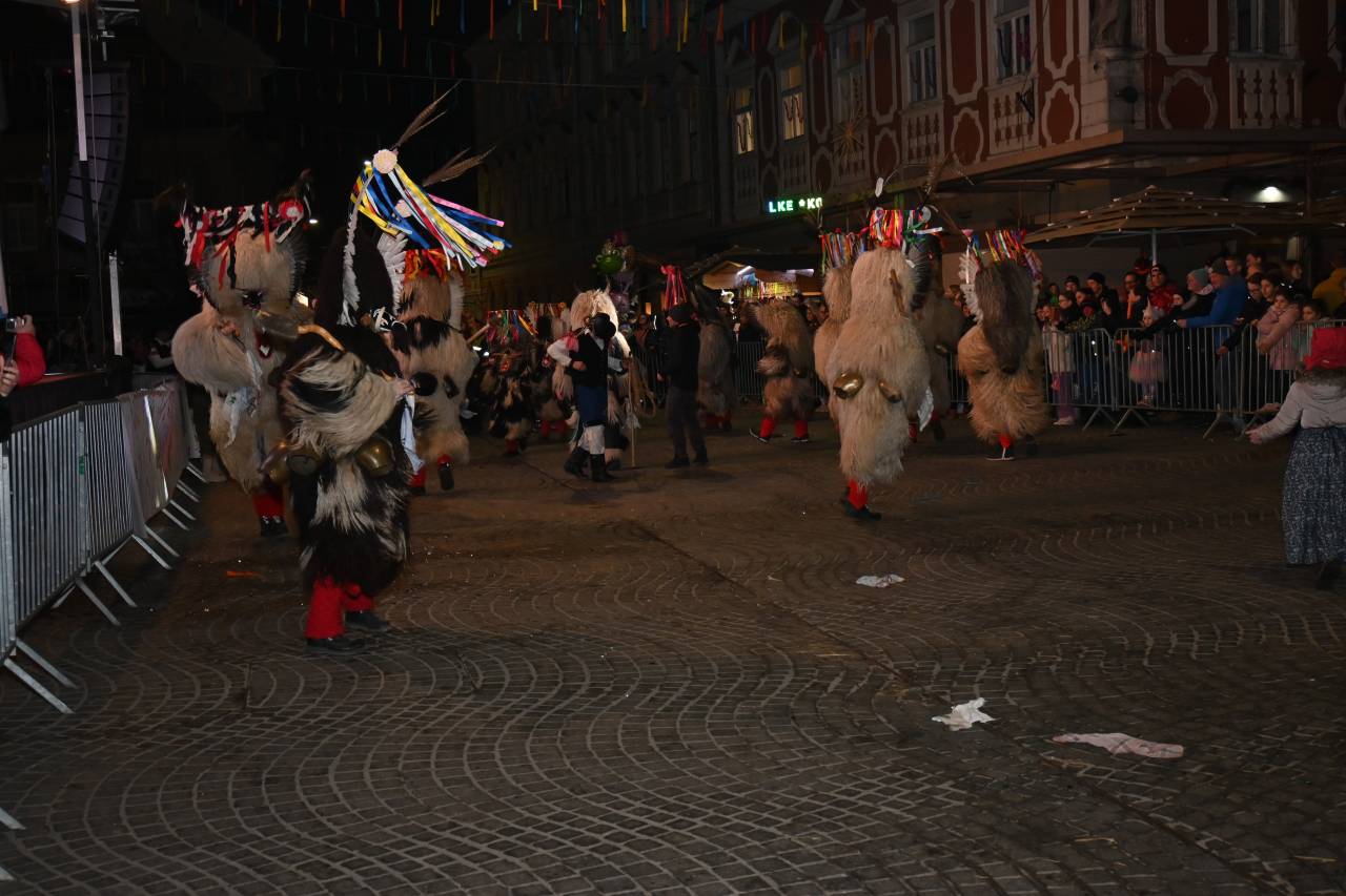 Na Mestnem trgu so se včeraj kot prve etnografske maske predstavili pokači, rusa in kurenti ter koranti. Kljub dežju jim je uspelo predstaviti vsaj del programa, obiskovalcev pa kljub slabemu vremenu ni manjkalo.