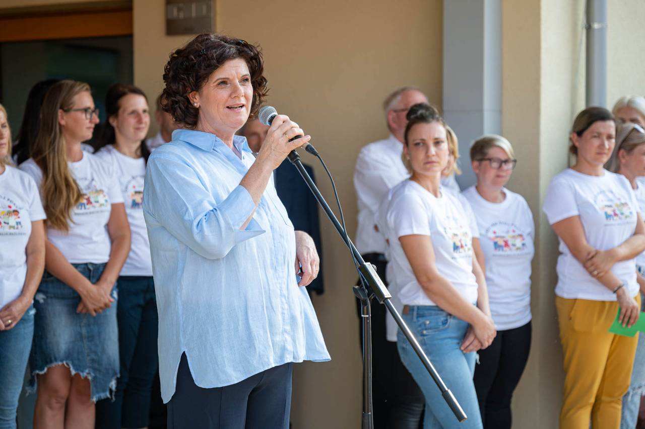 »Ponosna in vesela sem, da danes stojimo pred novim vrtcem. Naš vrtec je po energetskih standardih in standardih za predšolsko vzgojo trenutno najboljši v državi in eden izmed najboljših v Evropih, kar so potrdili številni strokovnjaki.«