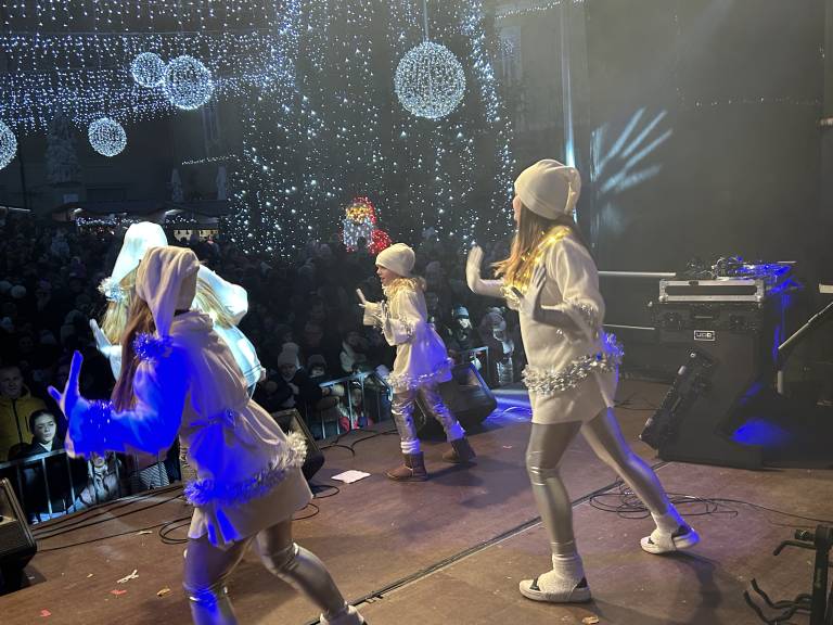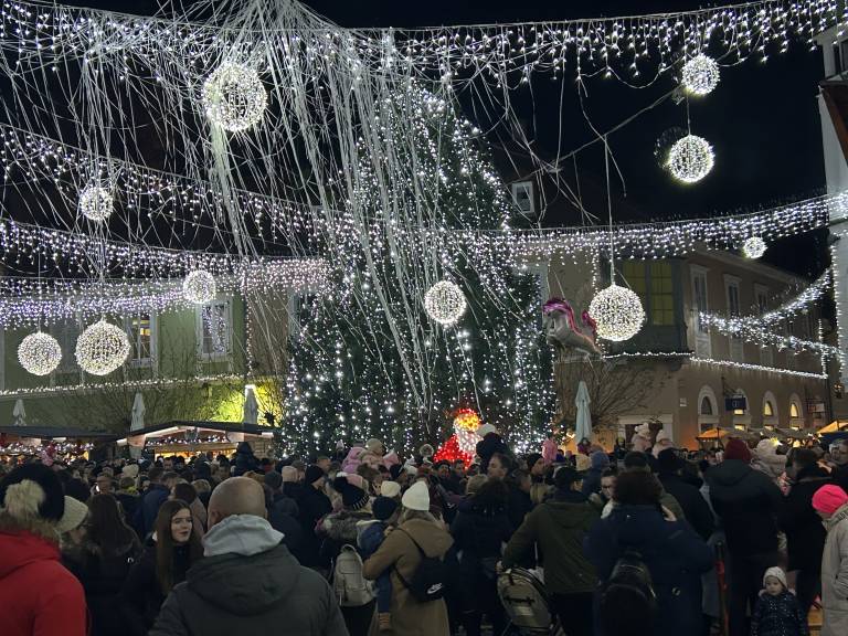 Čarobni začetek Ptujske pravljice si je ogledala množica ljudi, ki je napolnila Mestni trg, uživala v programu in v prazničnih hiškah naročila kakšen čaj ali kuhano vino.