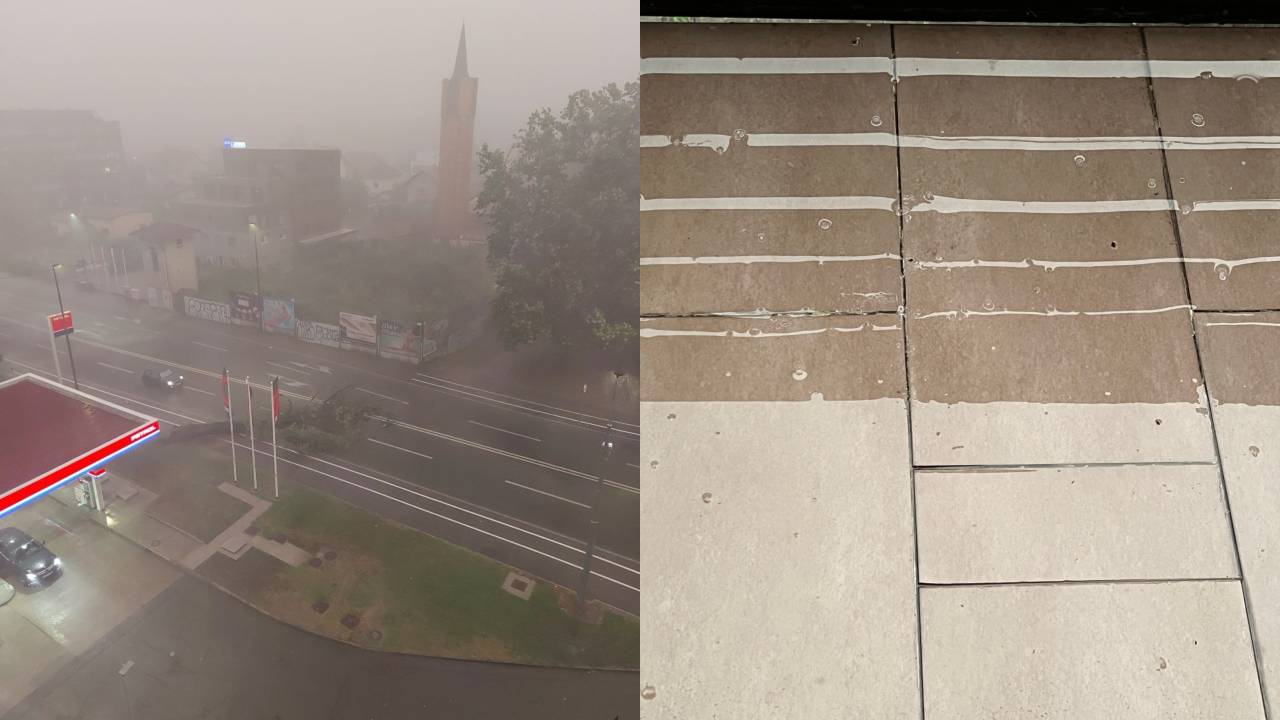 Močan veter, gosto deževje in ledene kepe so iznenada pretrgali oblake.