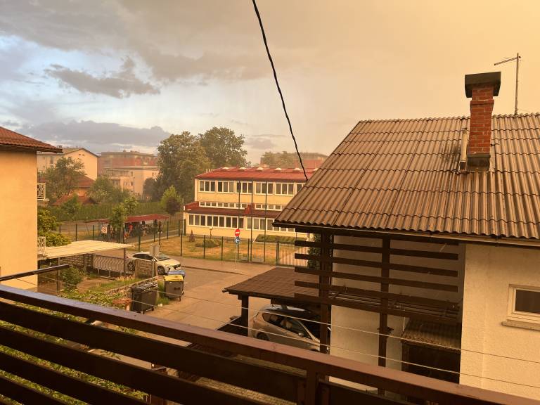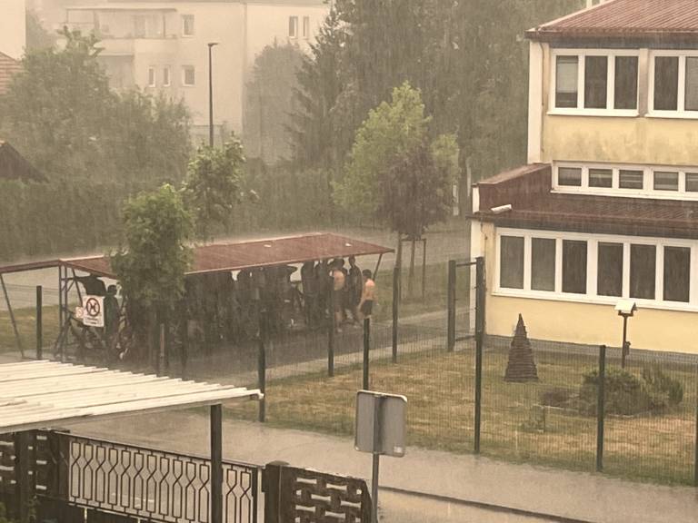 Z jasnega neba se je nenadoma usulo deževje, ki mu je takoj sledila toča. Na Viču so se ljudje poskrili pod bližnje strehe in si slekli majice.