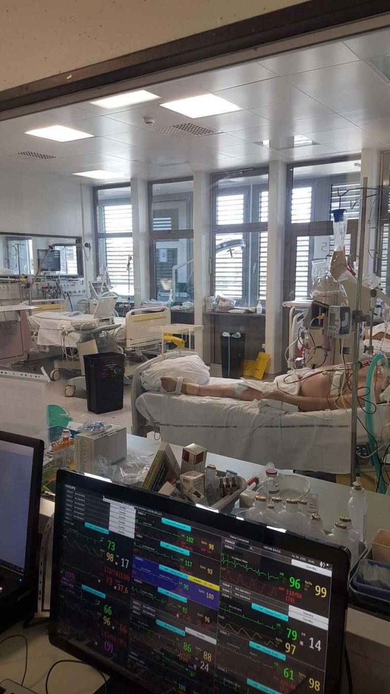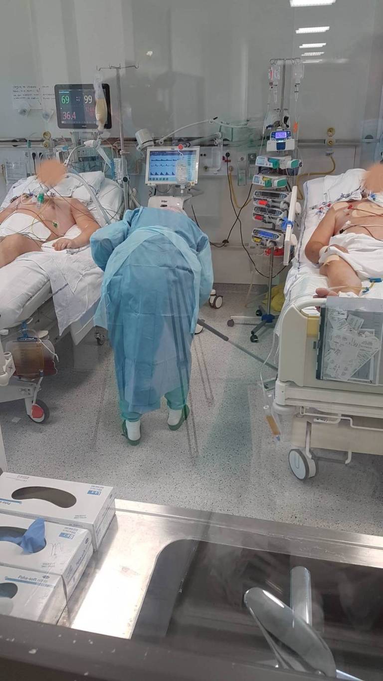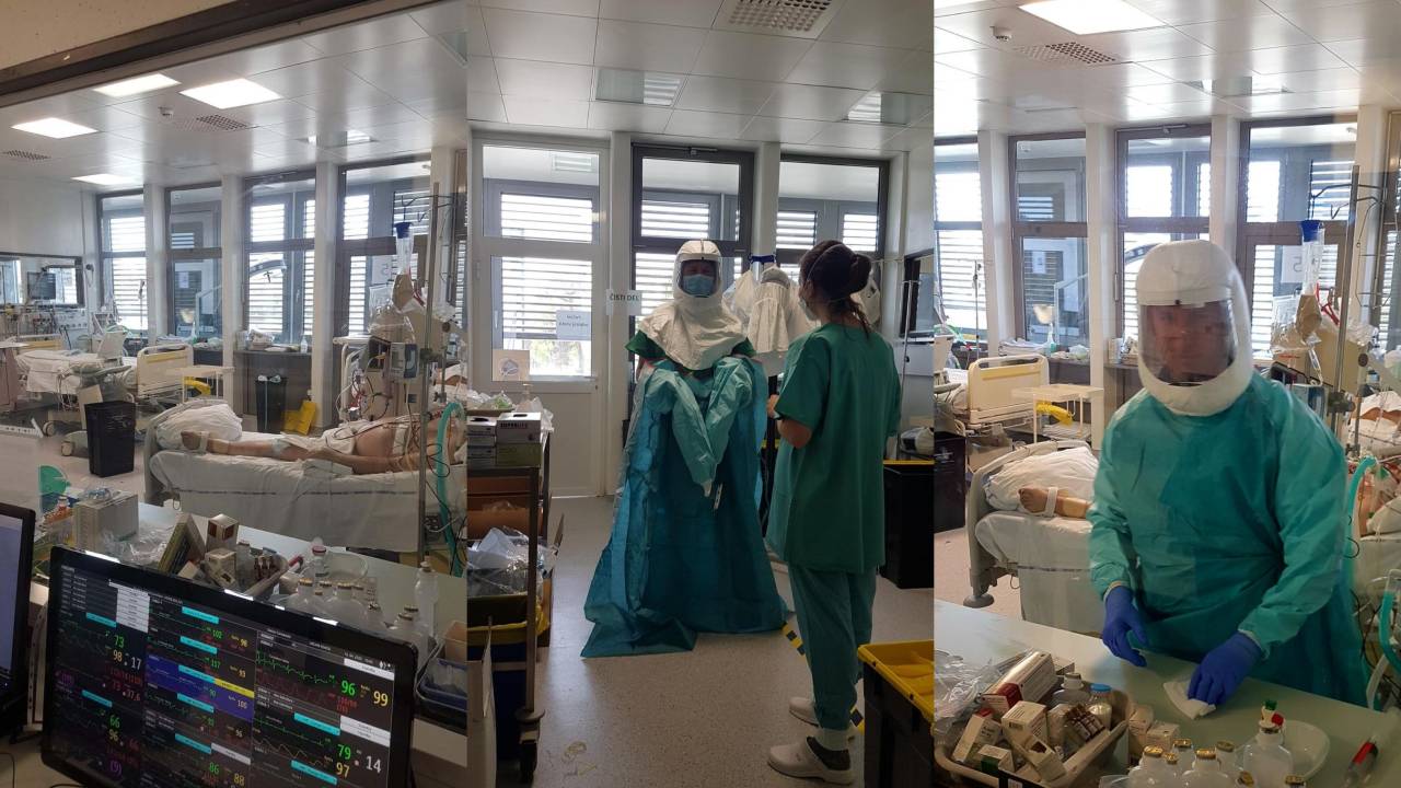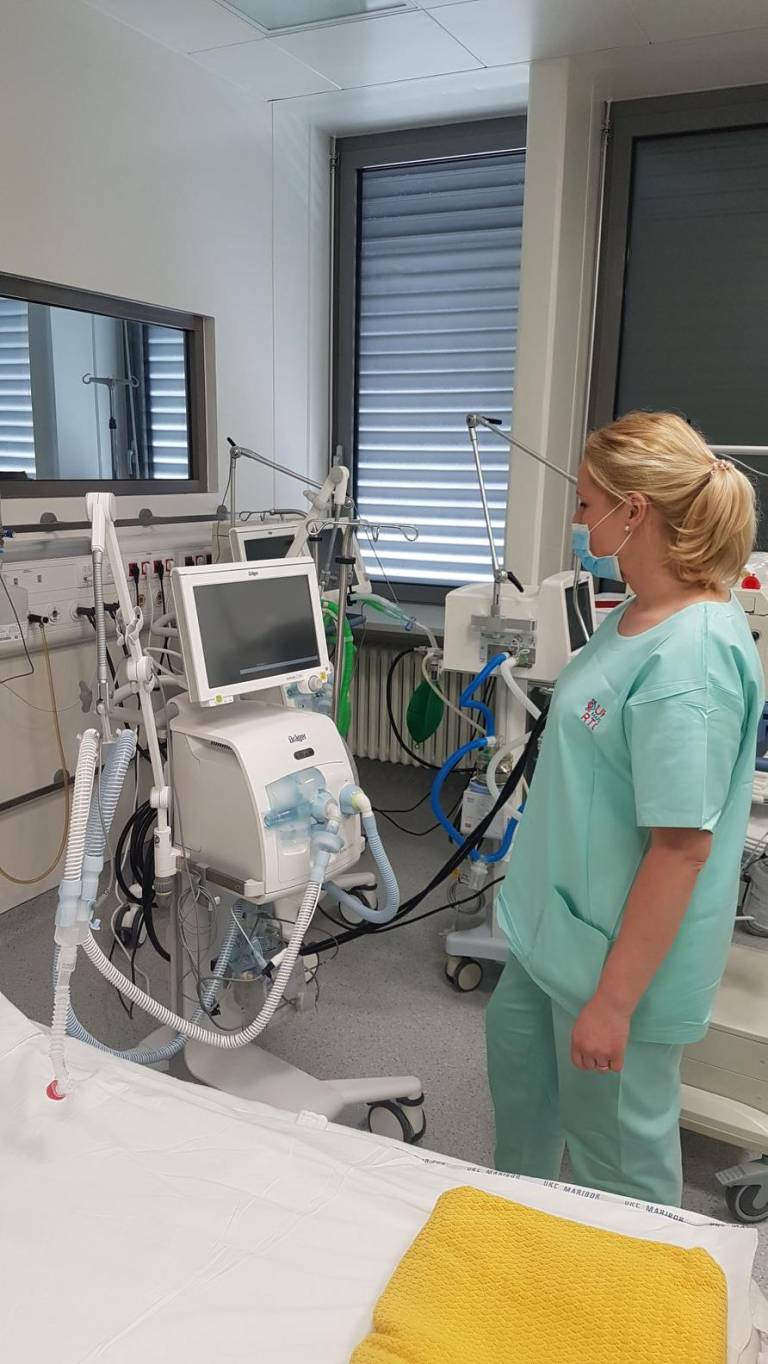 Osebne varovalne opreme je trenutno dovolj, dodaja Saša Verdnik, strokovna vodja zdravstvene nege Oddelka za anesteziologijo, intenzivno terapijo in terapijo bolečin. A kljub temu je strah pred okužbo pri zaposlenih močno prisoten, »zato se je veliko število zaposleni tudi odločilo, da ne hodi domov. Ločenost od otrok, partnerjev in svojih domačih pa povzroča dodaten stres.«