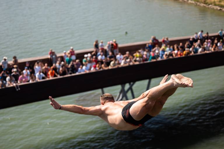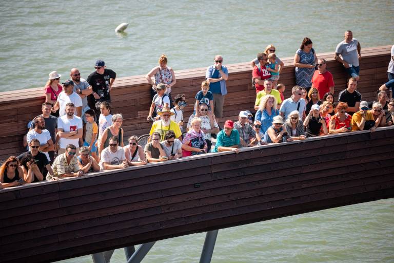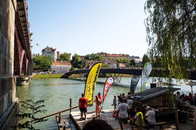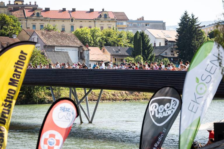 In letošnja posebnost? Splavarska brv. Nova brv čez Dravo, ki so jo v času vratolomnih skokov napolnili gledalci.