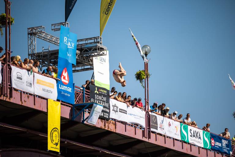 Društvo Adrenalin K. O. je danes, z začetkom ob 16.00, organiziral tradicionalno mednarodno tekmo v akrobatskih skokih z Glavnega mostu. Na tekmovanju so letos nastopili udeleženci iz Nemčije, Srbije, Danske, Avstrije in Slovenije.