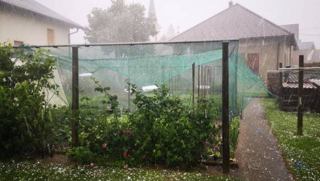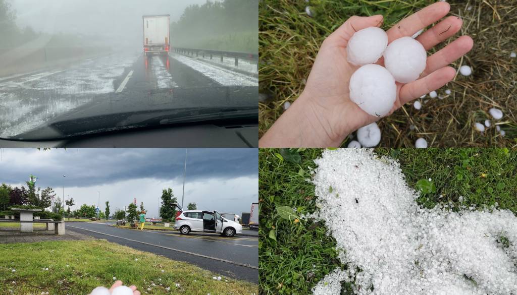 Močno neurje zajelo številne kraje na vzhodu Slovenije, na avtocesti je padala tudi toča v velikosti jajca, zaradi katere se je za nekaj časa ustavil promet.