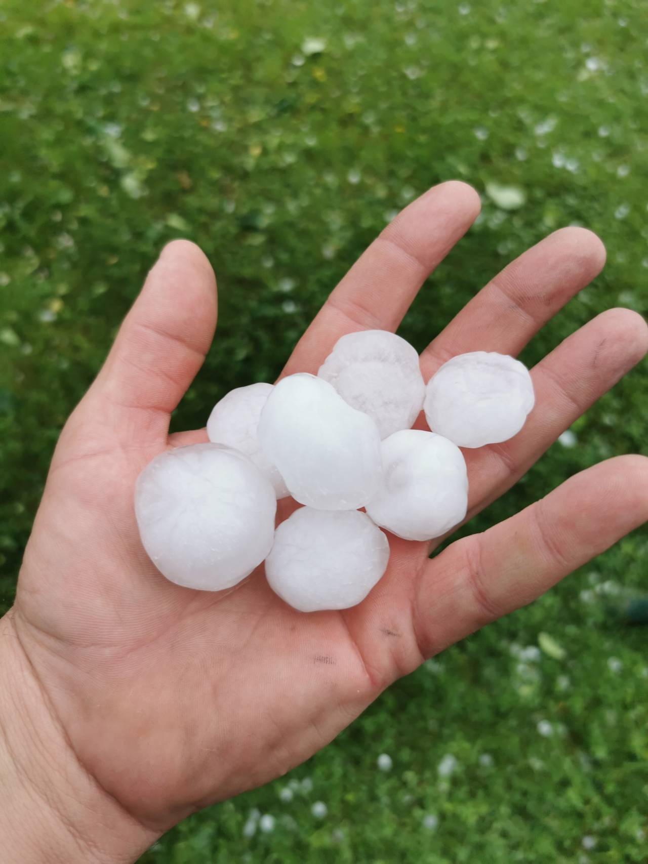 Iz Bakovcev pošiljajo posnetek o toči v velikosti jajca. Zelenice v njihovih krajih so popolnoma bele, neurje klesti po vrtovih,videti je, da bi snežilo.