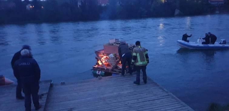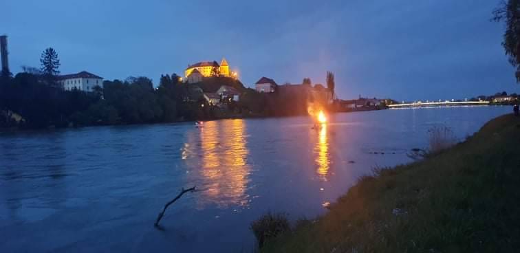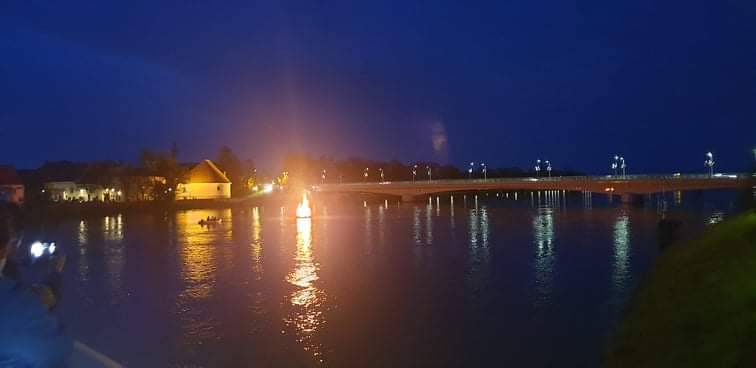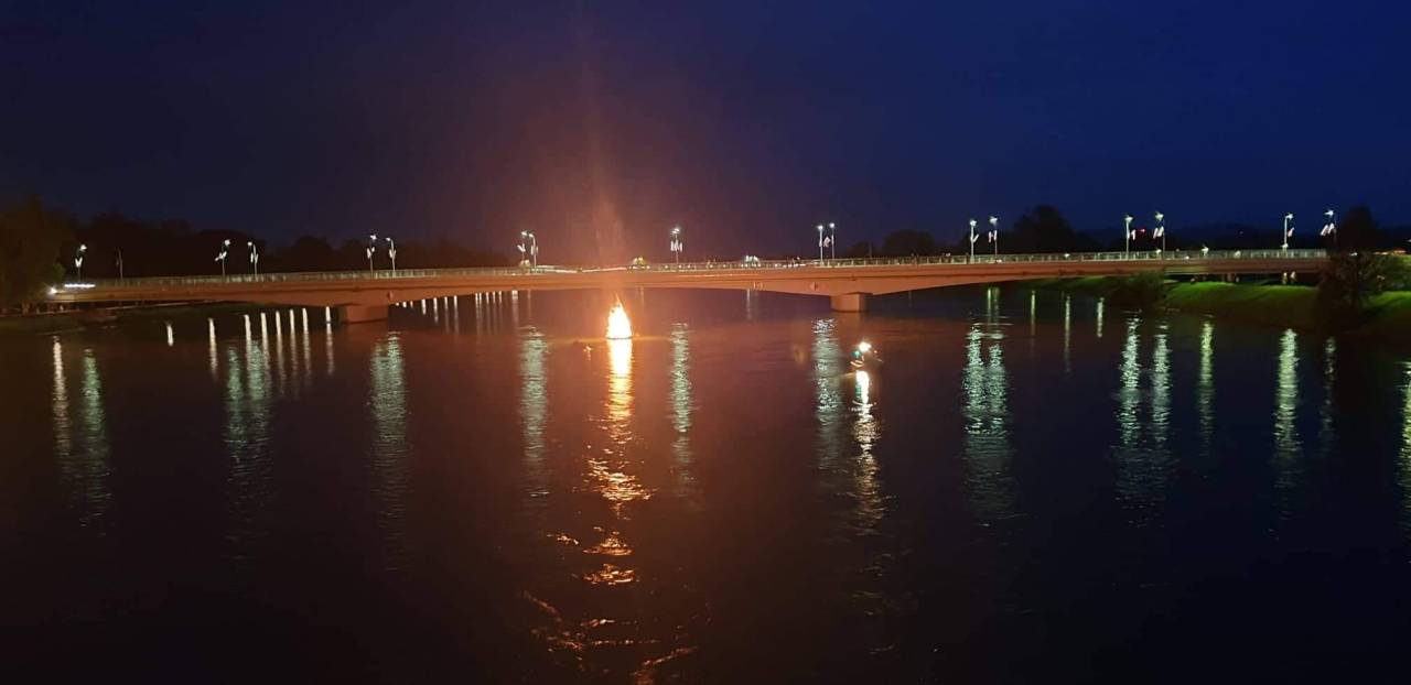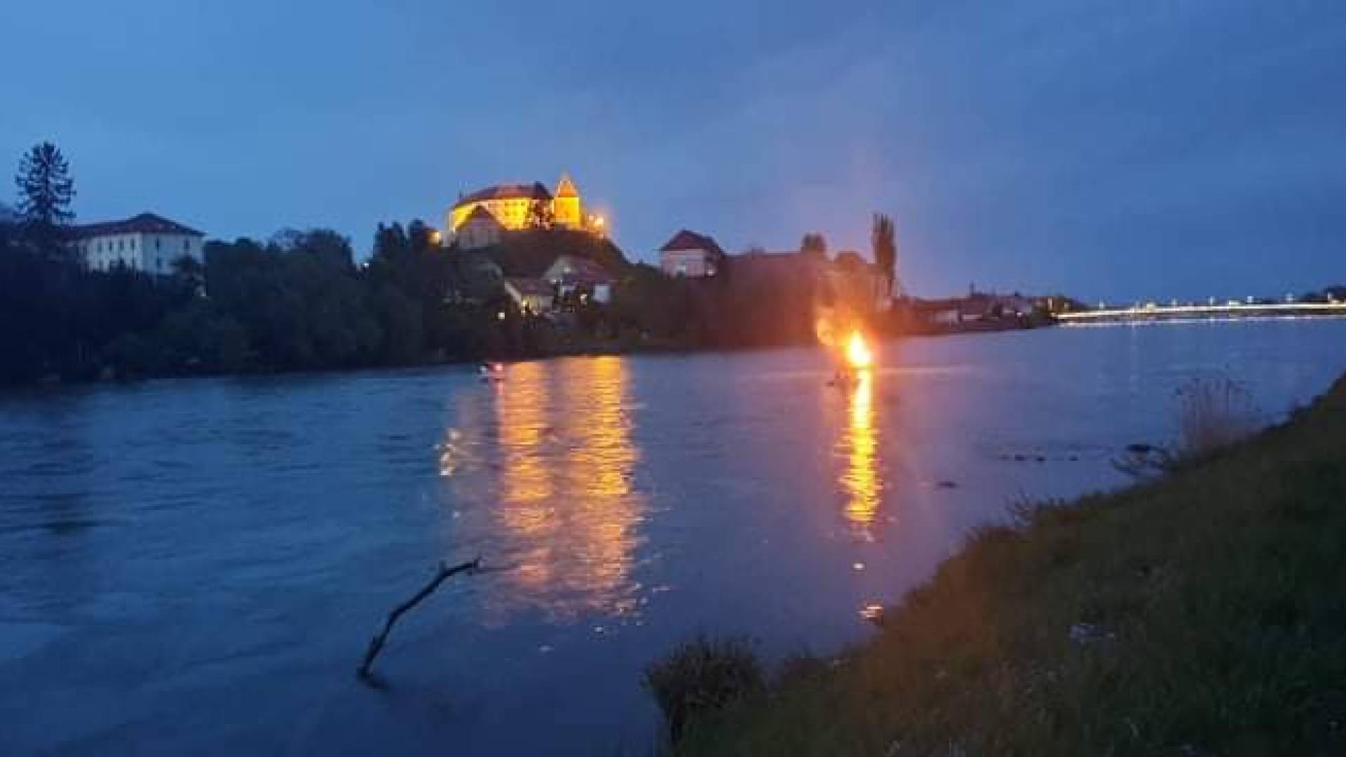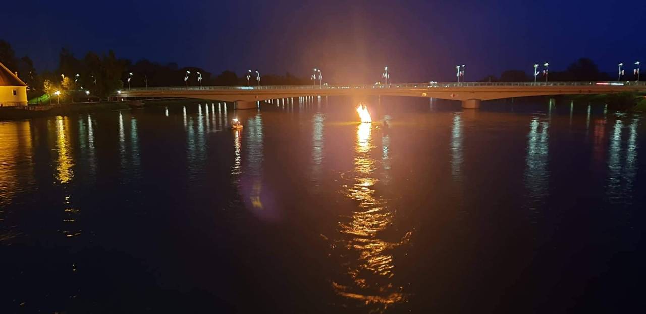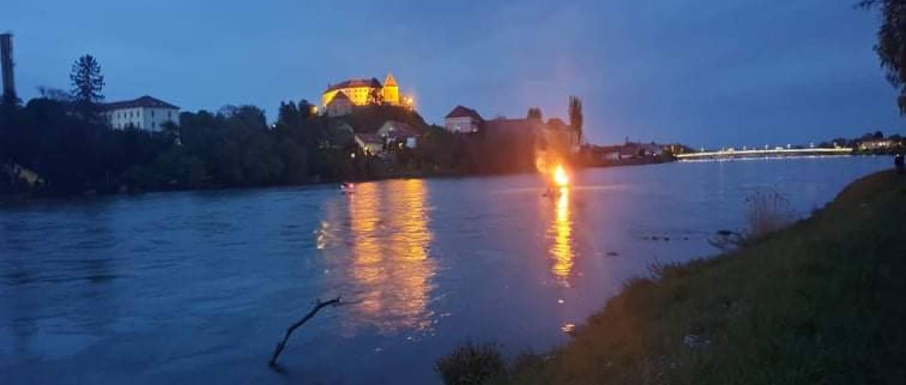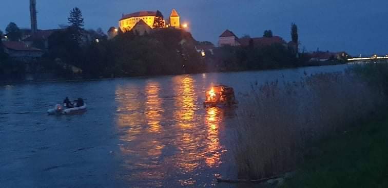Ptujsko brodarsko društvo je plavajoči kres prižgalo in spustilo pri Termah Ptuj.