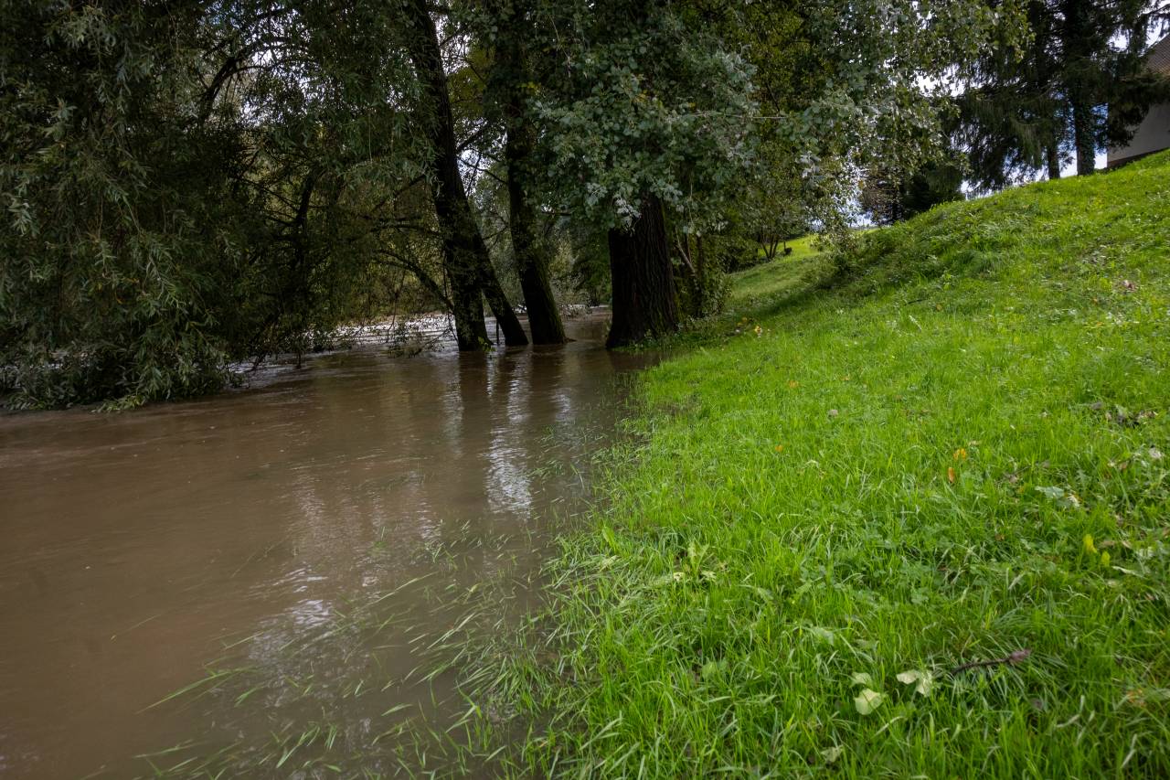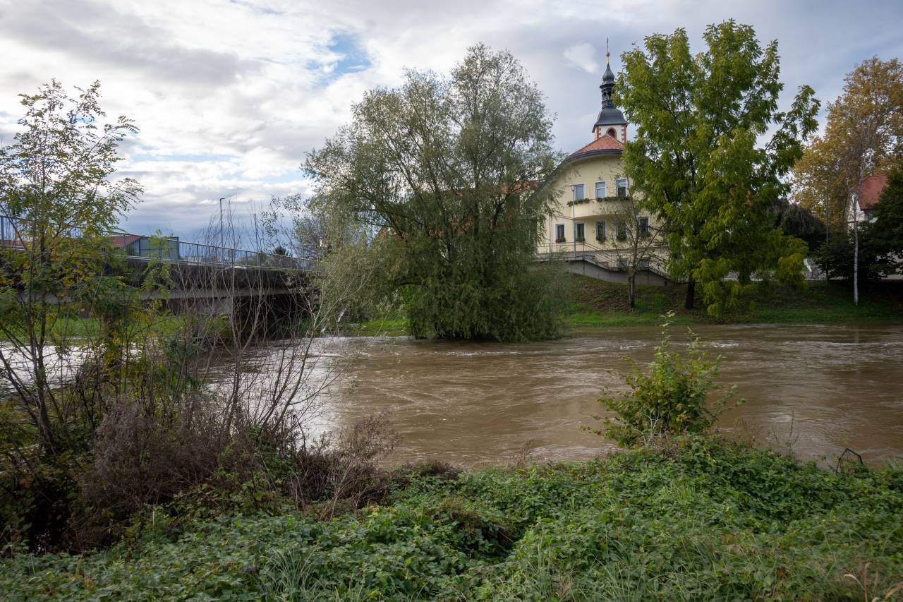 Dravinja s pritoki v spodnjem toku narašča in se na nekaterih mestih že razliva.