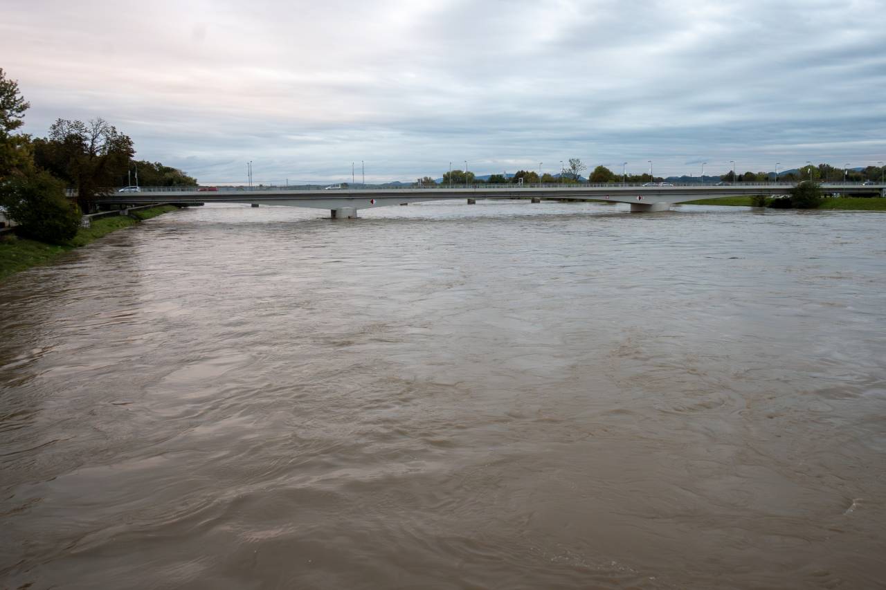 Pretok reke Drave je na območju Ptuja zelo visok, Dravinja pa je v občini Videm že zgodaj popoldne prestopila bregove.