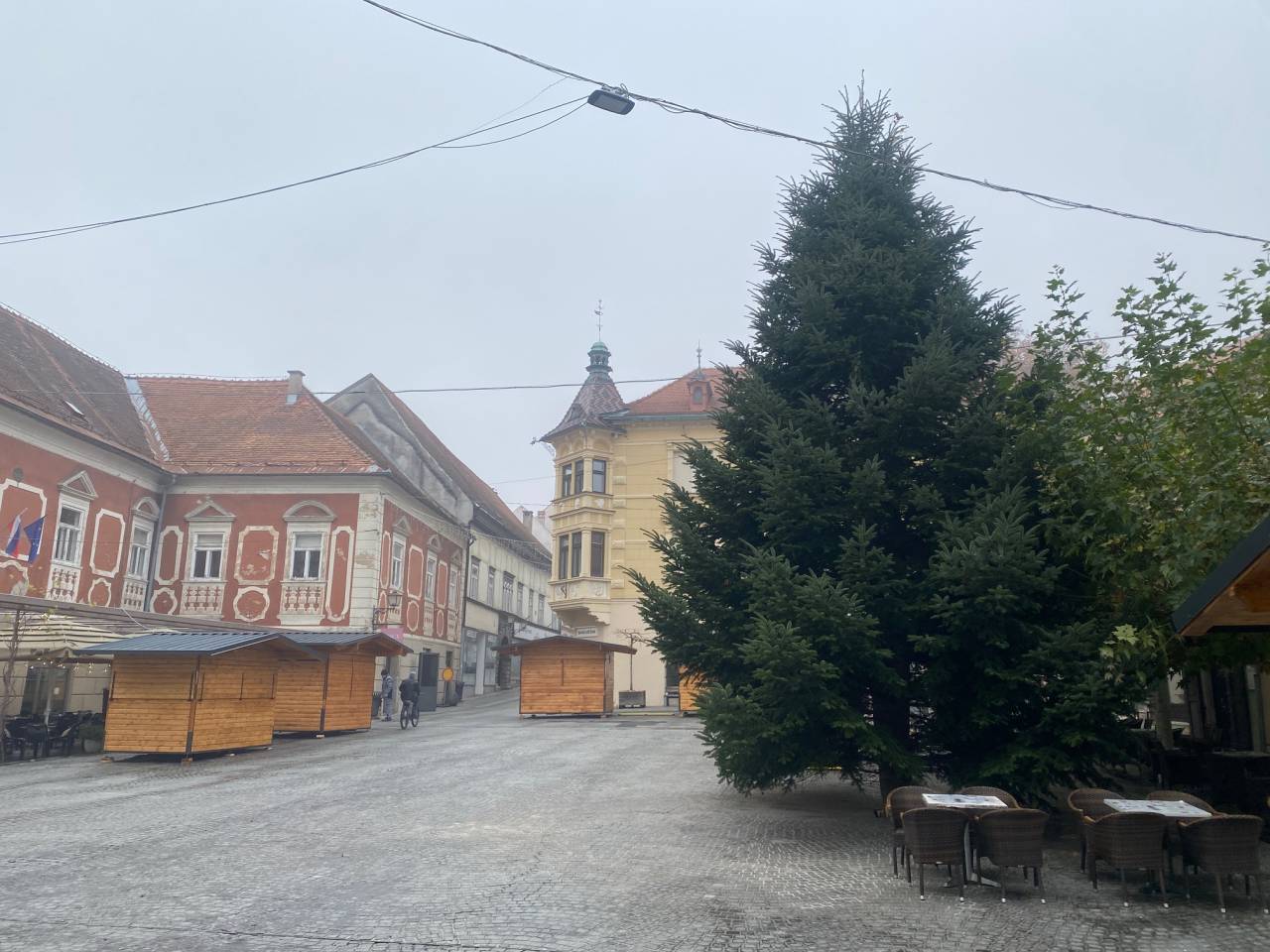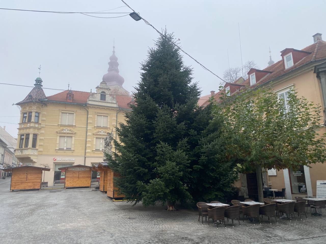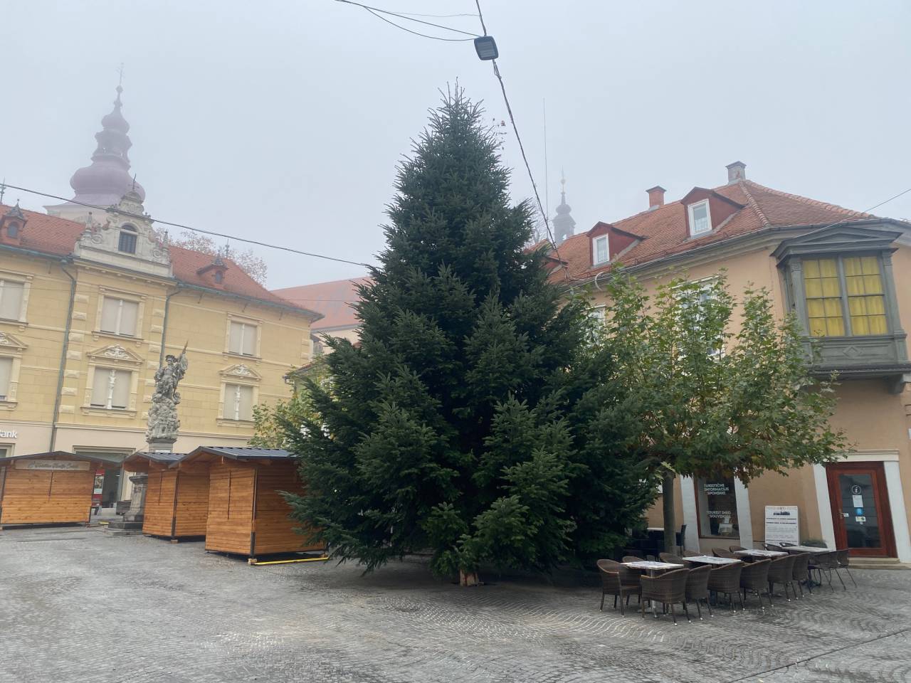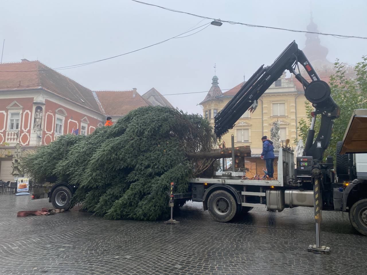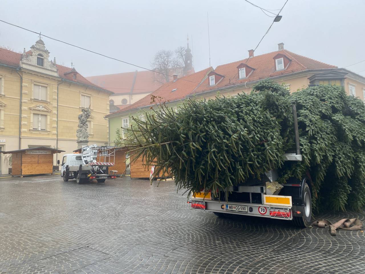 Delavci Javnih služb Ptuj nadaljujejo s pripravami na Advent na Ptuju. Danes so na Mestni trg pripeljali veliko smreko. Ta bo stala na svojem tradicionalnem mestu, pred Mestno hišo.
