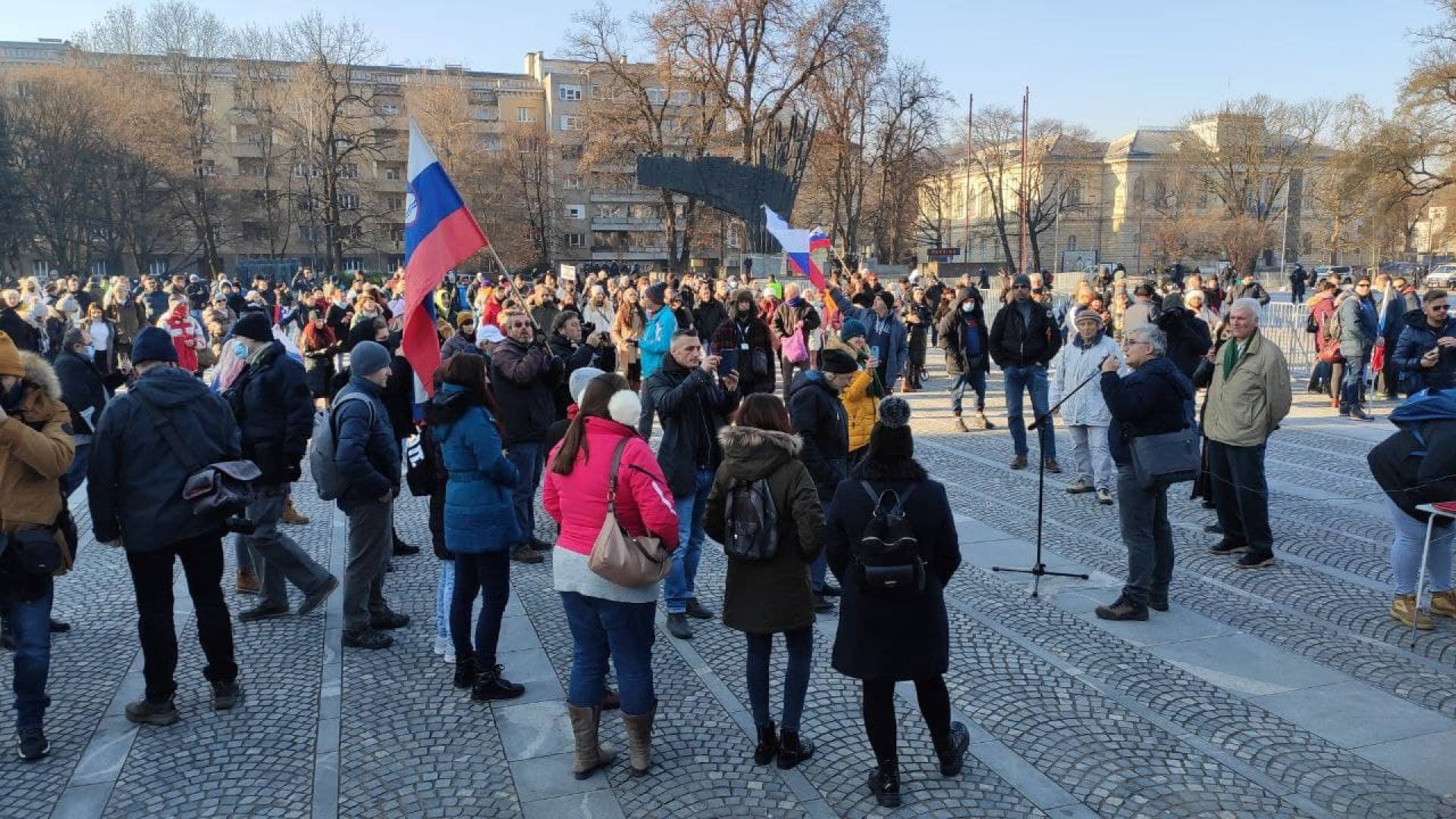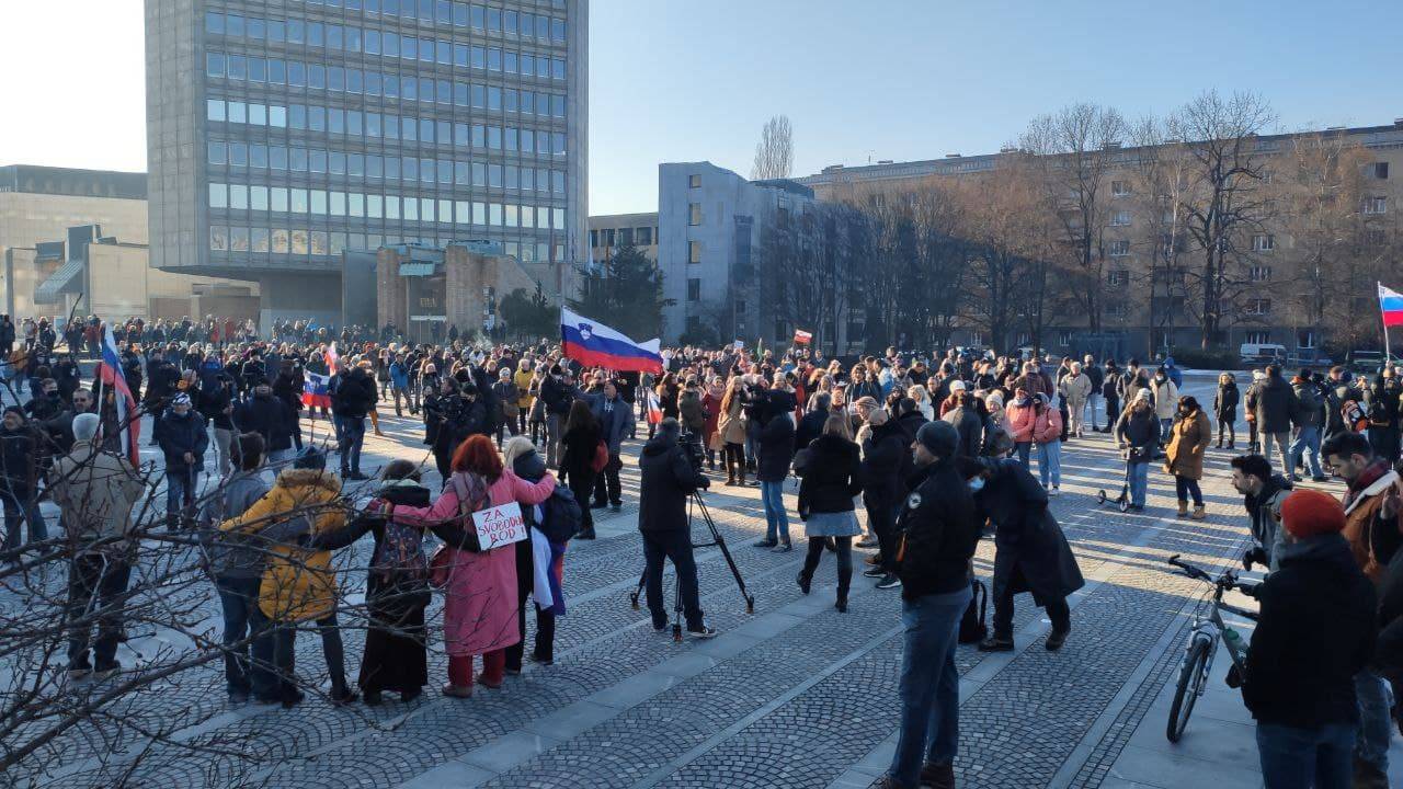 Na Trgu republike pred parlamentom so se ob 14. uri zbrali protestniki.