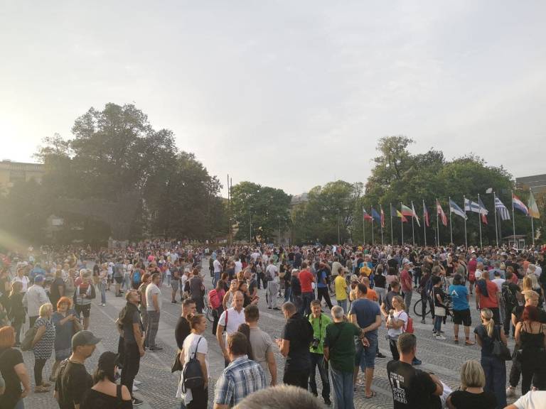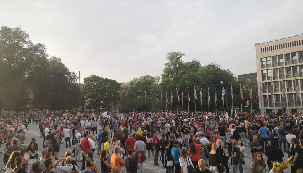 Pred parlamentom se je zbrala množica protestnikov. Zahtevali so predčasne volitve in spremembo covid ukrepov v priporočila. Doslednega nošenja mask in medsebojne razdalje ni opaziti, niti pri policistih.