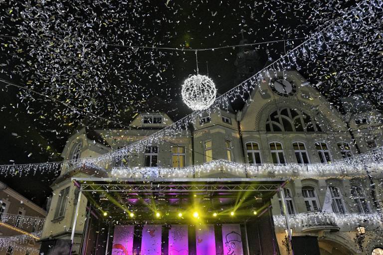 Danes se je ob 17.45 pred ptujsko Mestno hišo s spektakularnim prižigom prazničnih luči in z obiskom Ledene kraljice z ognjenim spremstvom tudi na Ptuju uradno začel najlepši mesec v letu.