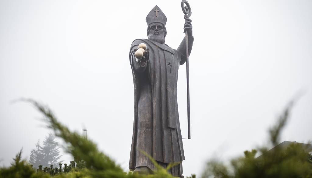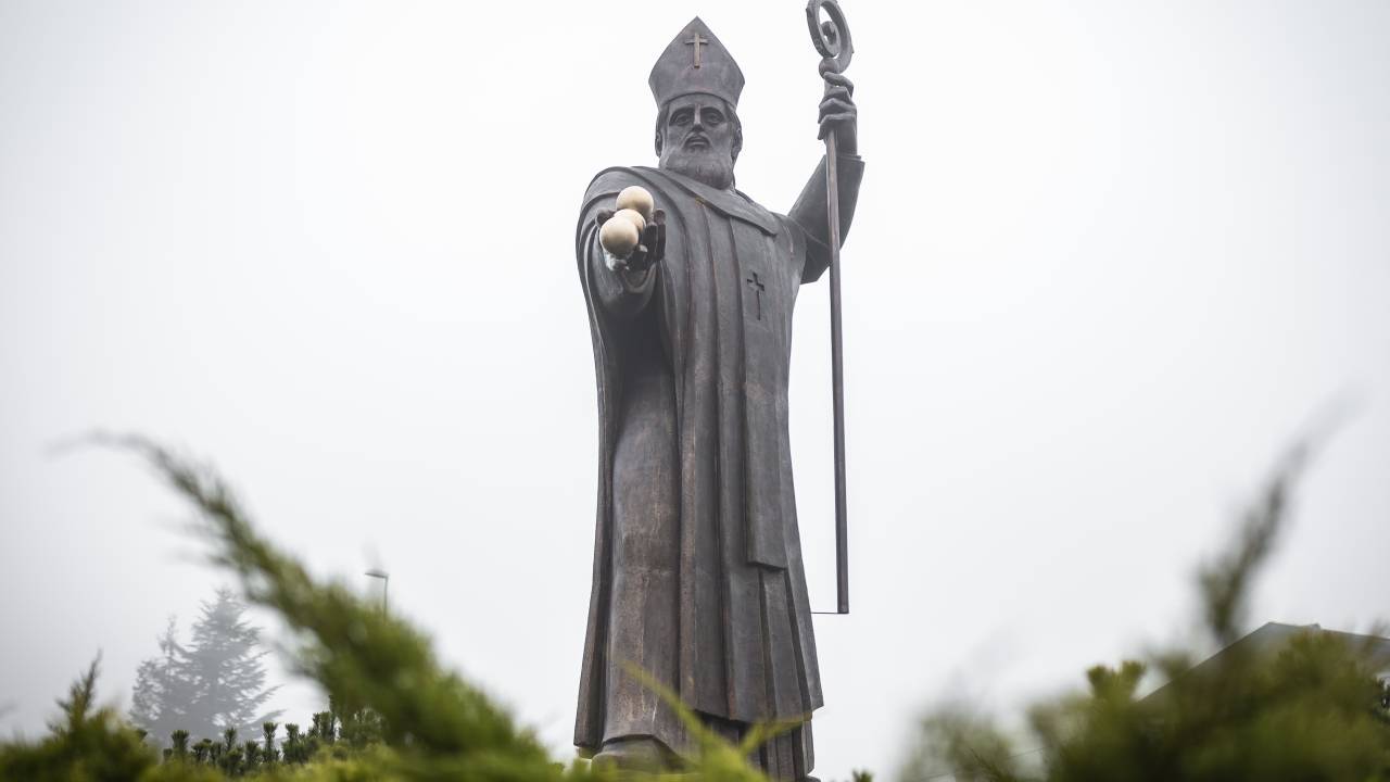 V krožišču pri stolni cerkvi v Murski Soboti so danes postavili kip svetega Nikolaja.