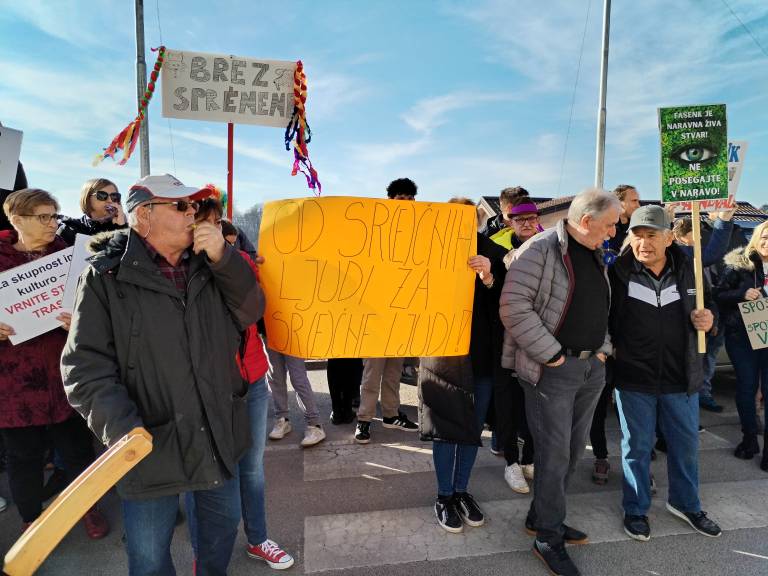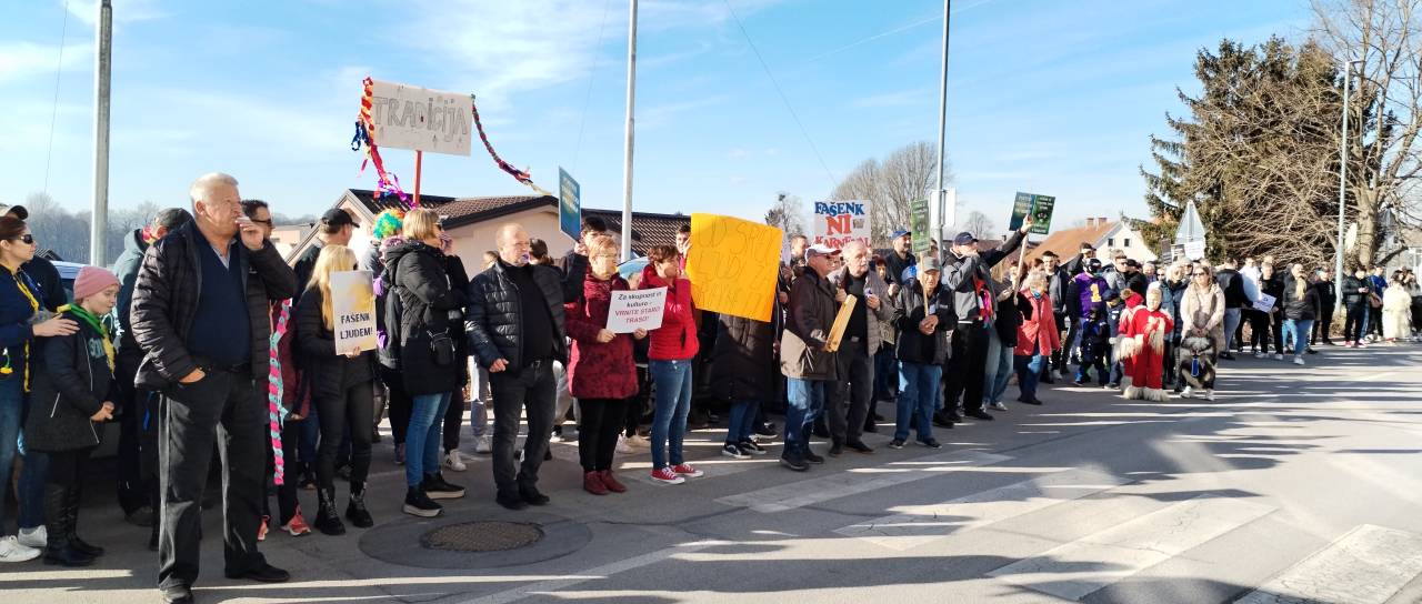 Na protestu se je zbralo kar nekaj vaščanov, ki so odločeni, da gredo v smeri tradicionalne povorke.