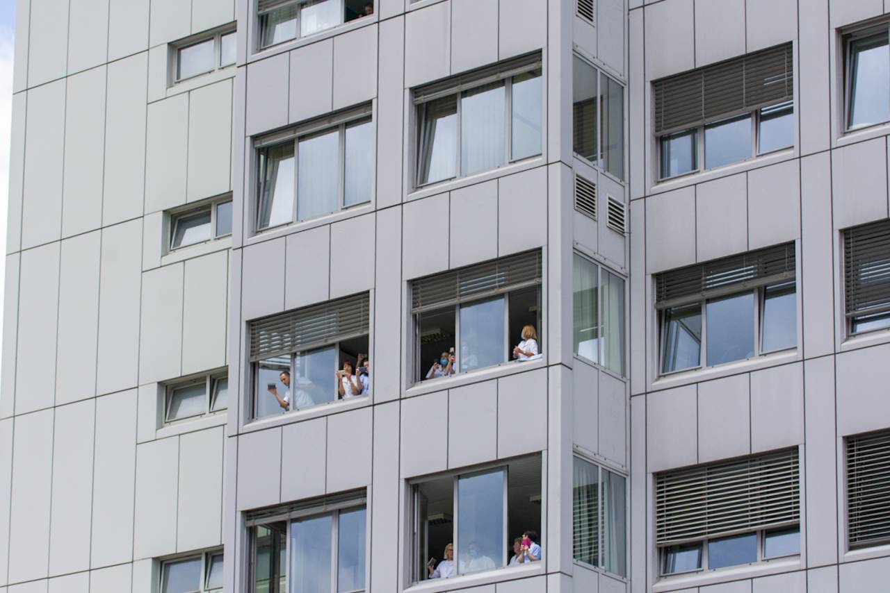 V času preleta patrulje so policije v neposredni bližini bolnišnic, tudi pred Univerzitetnim kliničnim centrom Maribor, prižgale modre luči, z aplavzom pa so se poklonili zdravstvenim delavcem.