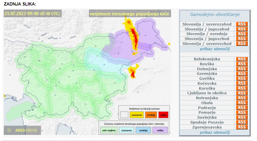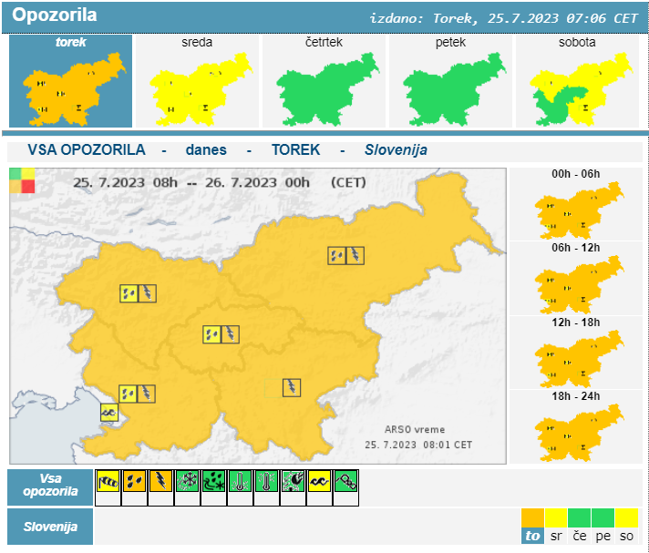Agencija Republike Slovenije za okolje opozarja, da bo po vsej državi velika verjetnost neurij.