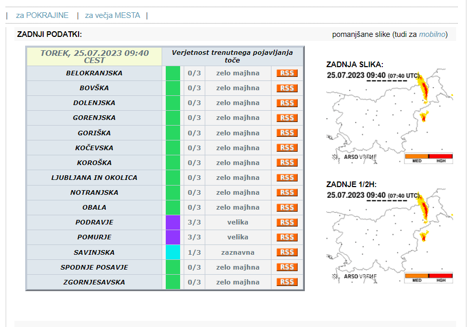Slabemu vremenu ni videti konca, Agencija Republike Slovenije za okolje je za Pomurje in Podravje izdala vijolično opozorilo.
