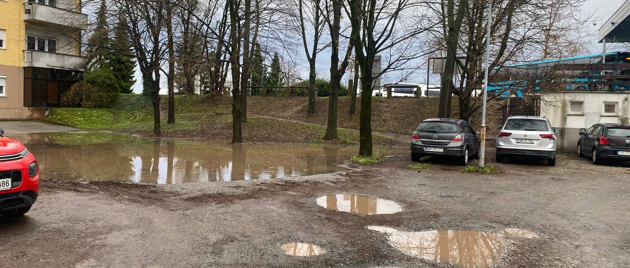 Veliko število lukenj in neravni teren sta razlog, da ob veliki količini padavin, voda ta predel popolnoma prekrije.