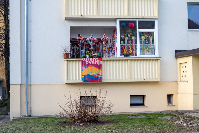 Na stavbah, oknih in v izložbah trgovin na Ptuju lahko v teh dneh občudujemo pustno okrasitev s pisanimi trakovi in različnimi pustnimi liki ter maskami.