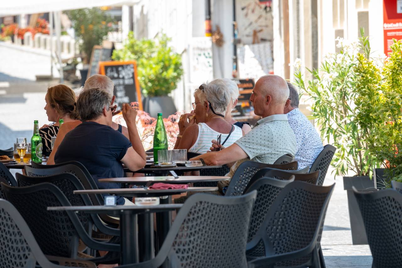 Na Ptuju vročina ne popušča in mesto je precej bolj prazno, kot po navadi. Domačini in turisti, ki si vendarle upajo na ulice mesta Ptuj tudi v času največje vročine pa se zadržujejo v senci, pod drevesi, in na senčnih terasah mesta.
