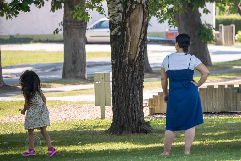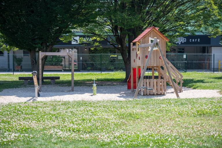 Tista otroška igrala in kotički, ki so obdani z drevesi so trenutno najbolj oblegani, pa še tam čez dan najdemo le malo družin in posameznikov.