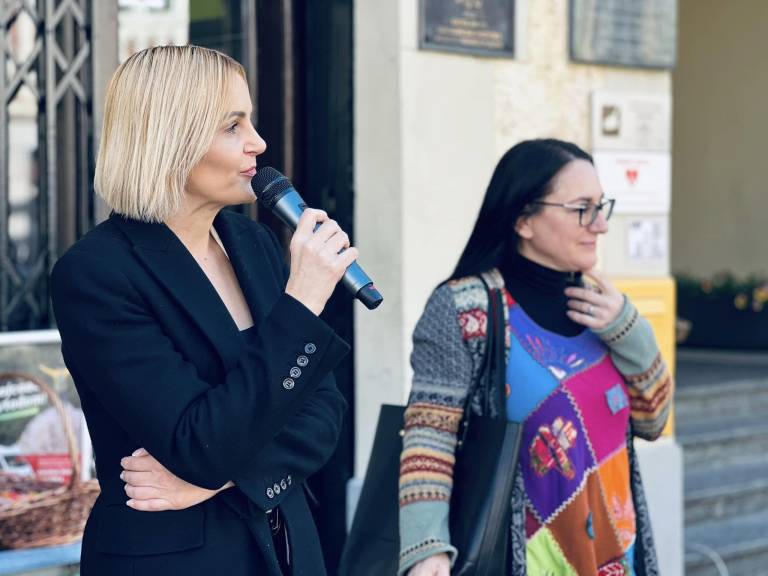 Obeleževali smo svetovni dan Downovega sindroma in ob tej priložnosti so zbrane pred Mestno hišo Ptuj nagovorili učenci Osnovne šole Ljudevita Pivka.