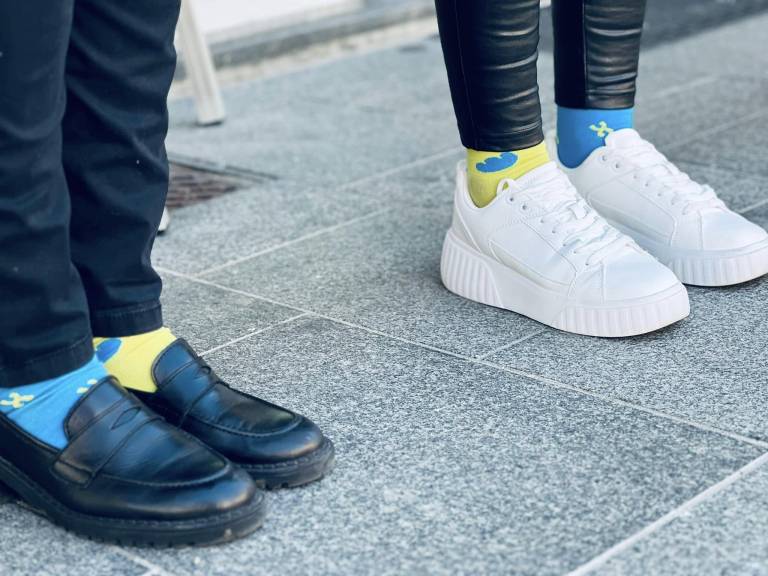 Učenci so do mestne hiše prišli z modrimi baloni v rokah in obuti v raznobarvne nogavice, so sporočili iz občine. Raznobarvne nogavice so razpoznavni znak tega dne, ki simbolično opozarja na to, da želijo biti tudi ljudje z Downovim sindromom videni in opaženi.