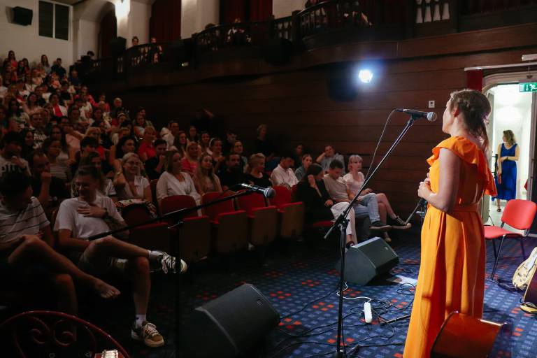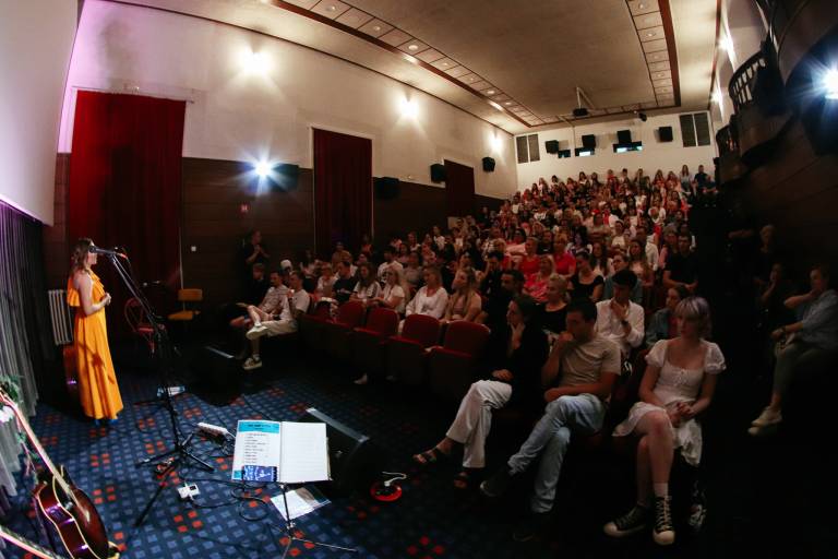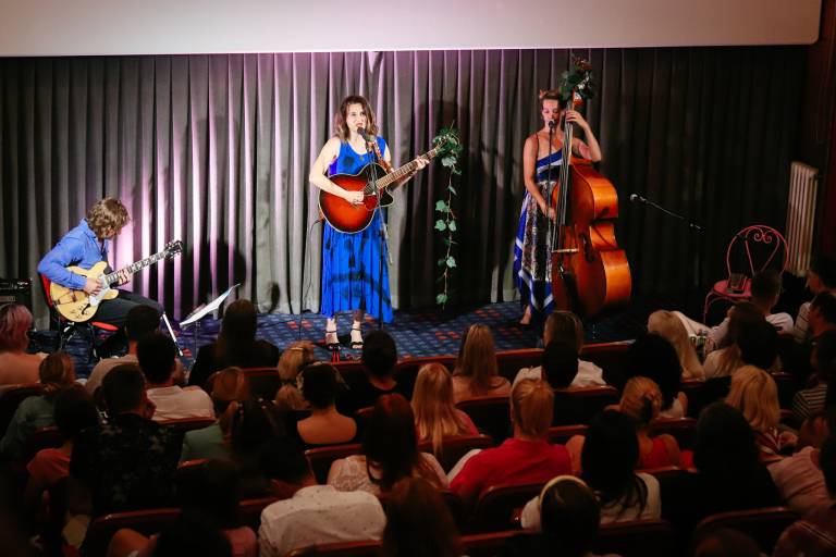 V vzdušje letnega kina je gledalce pred projekcijo zazibal trio hrvaške kantavtorice Nine Romić.