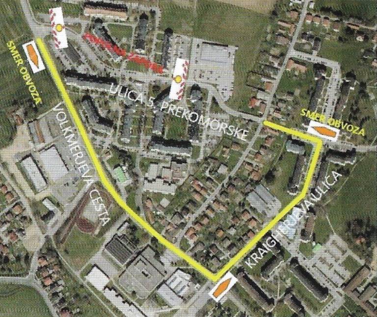 Od 15. julija do 30. septembra bo zapora od priključka na parkirišče Spar do novega križišča na Volkmerjevi cesti. Obvoz bo potekal po Volkmerjevi cesti in Kraigherjevi ulici na Ulico 5. prekomorske.