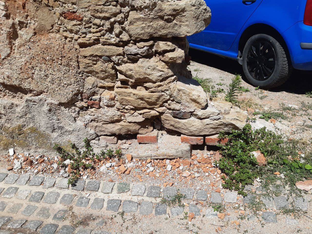 Že pred časom je bil podan odgovor občine, da bo izvedena odstranitev dela zidu, ki ogroža prometno in splošno varnost ljudi.