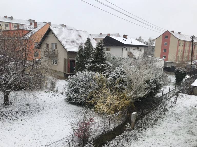 V večjem delu Slovenije smo se prebudili v zasneženo jutro, tudi v Mariboru. Ponoči se je rahlo sneženje razširilo nad vso Slovenijo, izraziteje je snežilo v hribovitih predelih v vzhodni in predvsem jugovzhodni Sloveniji.