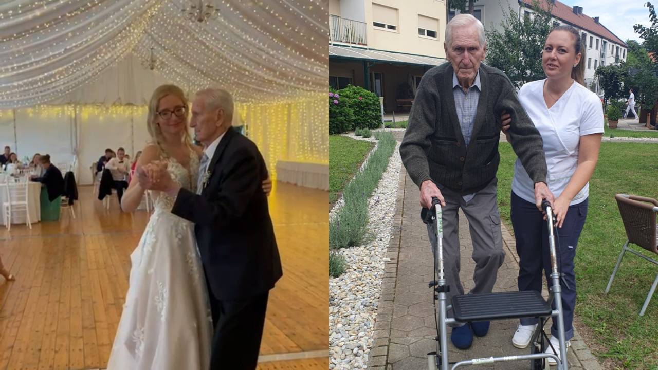 93-letni Franc je po dveh mesecih priprav le zaplesal z vnukinjo na njen poročni dan.