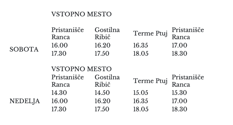 Ladjica bo vozila ob sobotah in nedeljah po naslednjem urniku: