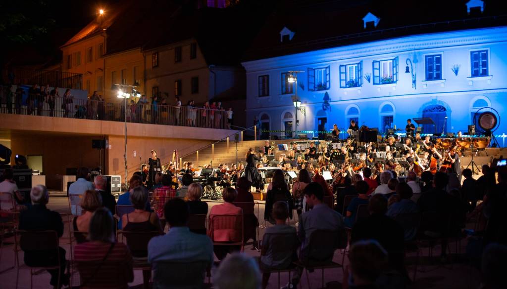 Včeraj je na Večerih pred dnevi na Mestni tržnici Ptuj zazvenel orkestrski vrtiljak Slovenskega nacionalnega mladinskega orkestra, ki je v sodelovanju z dirigentko Živo Ploj Peršuh predstavil pester opus Dominika Bagole – Balladera, pridružila pa sta se tudi Jadranka Juras in Emkej.