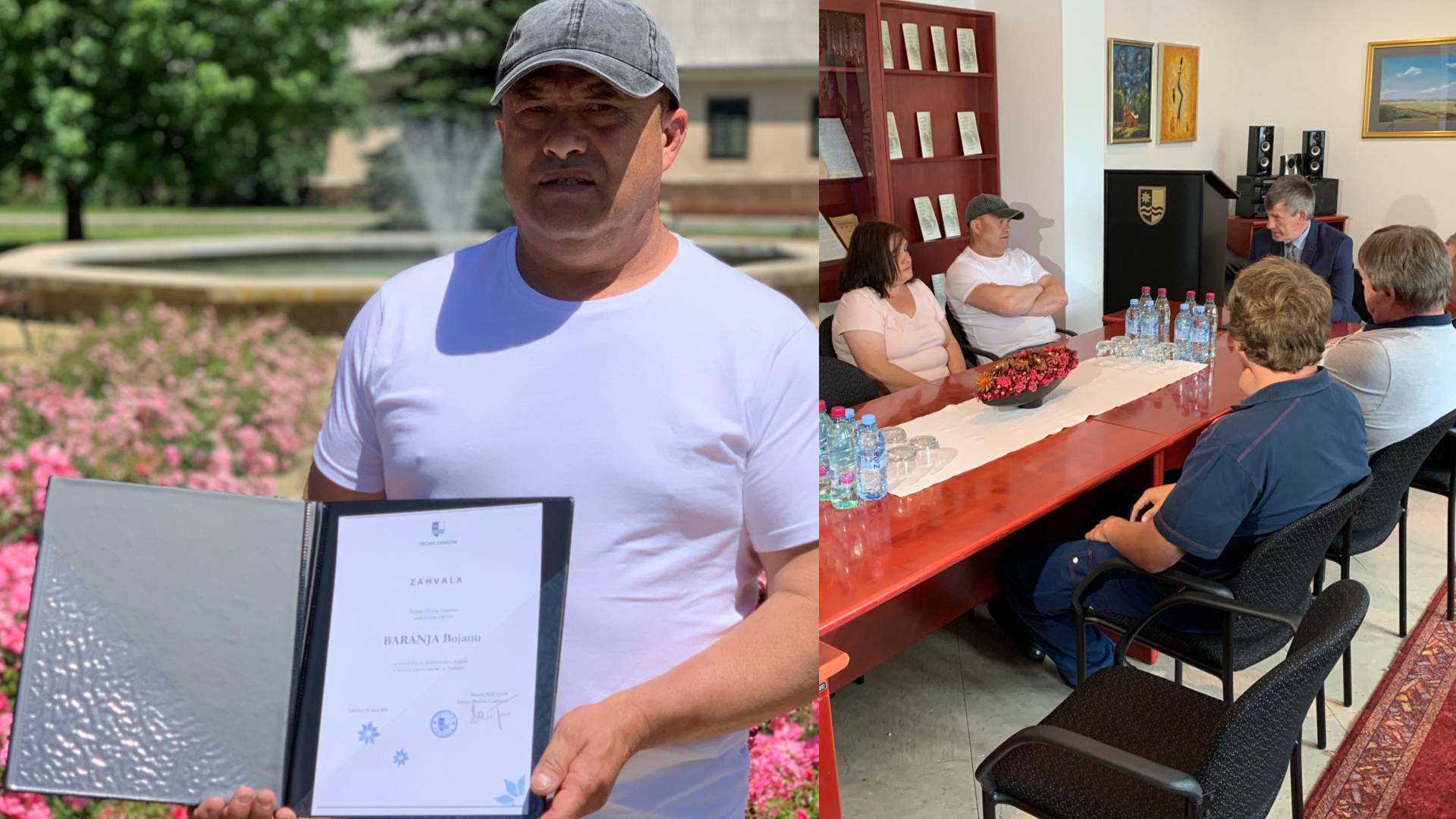 Zadnji teden tako za cankovskega junaka ni bil enostaven. Ob strani mu zato stoji celotna občina, v imenu katere mu je danes župan Danilo Kacijan podelil zahvalo za nesebično in požrtvovalno dejanje v zvezi z ropom banke na Cankovi. »Tvoja družina, tvoja žena, tvoji otroci morajo biti danes, včeraj in jutri ponosni,« je ob predaji zahvale povedal župan.