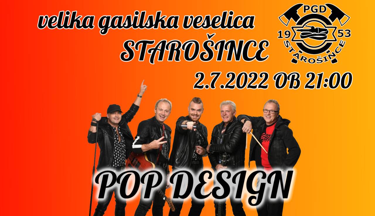 Prostovoljno gasilsko društvo Starošince 2. julija ob 70. letnici delovanja prireja veliko gasilsko veselico s skupino Pop Design. Pričetek je ob 21. uri.