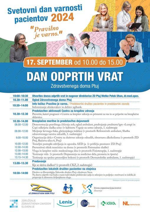 Ob letošnjem Svetovnem dnevu varnosti pacientov Zdravstveni dom Ptuj aktivno sodeluje v vseslovenski kampanji ozaveščanja, ki vključuje 30 zdravstvenih zavodov po vsej Sloveniji.