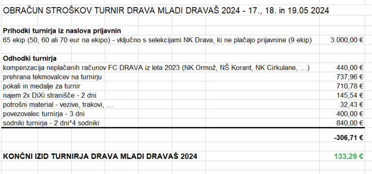 Drava je organizirala zimski turnir Indoor Ptuj in kasneje še turnir Mladi Dravaš, Krajnc pa naj bi po besedah Maglice prijavnine speljal na transakcijski račun svojega društva, račune pa izstavljal z logotipom Drave in uporabljal njihovo štampiljko.