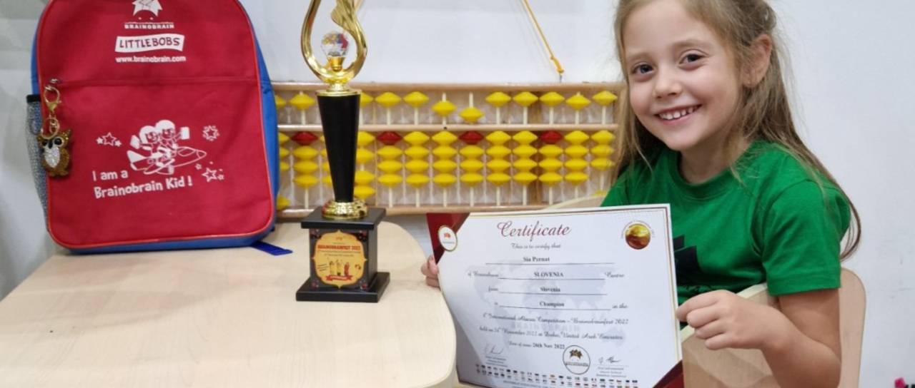 5-letna Štajerka je na mednarodnem tekmovanju Brainobrain v hitrostnem računanju v Dubaju osvojila najvišjo možno nagrado – Champion pokal.